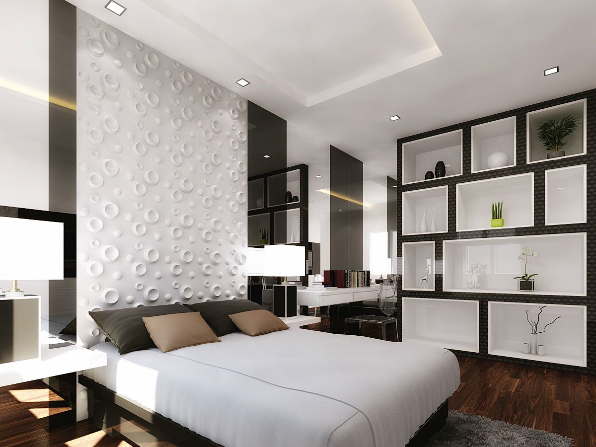 Красивые стены из гипсокартона в спальне