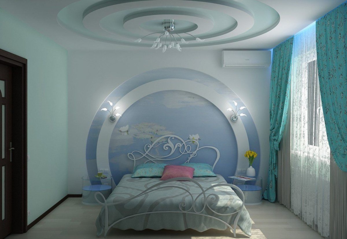 Гипсокартонные потолки над кроватью