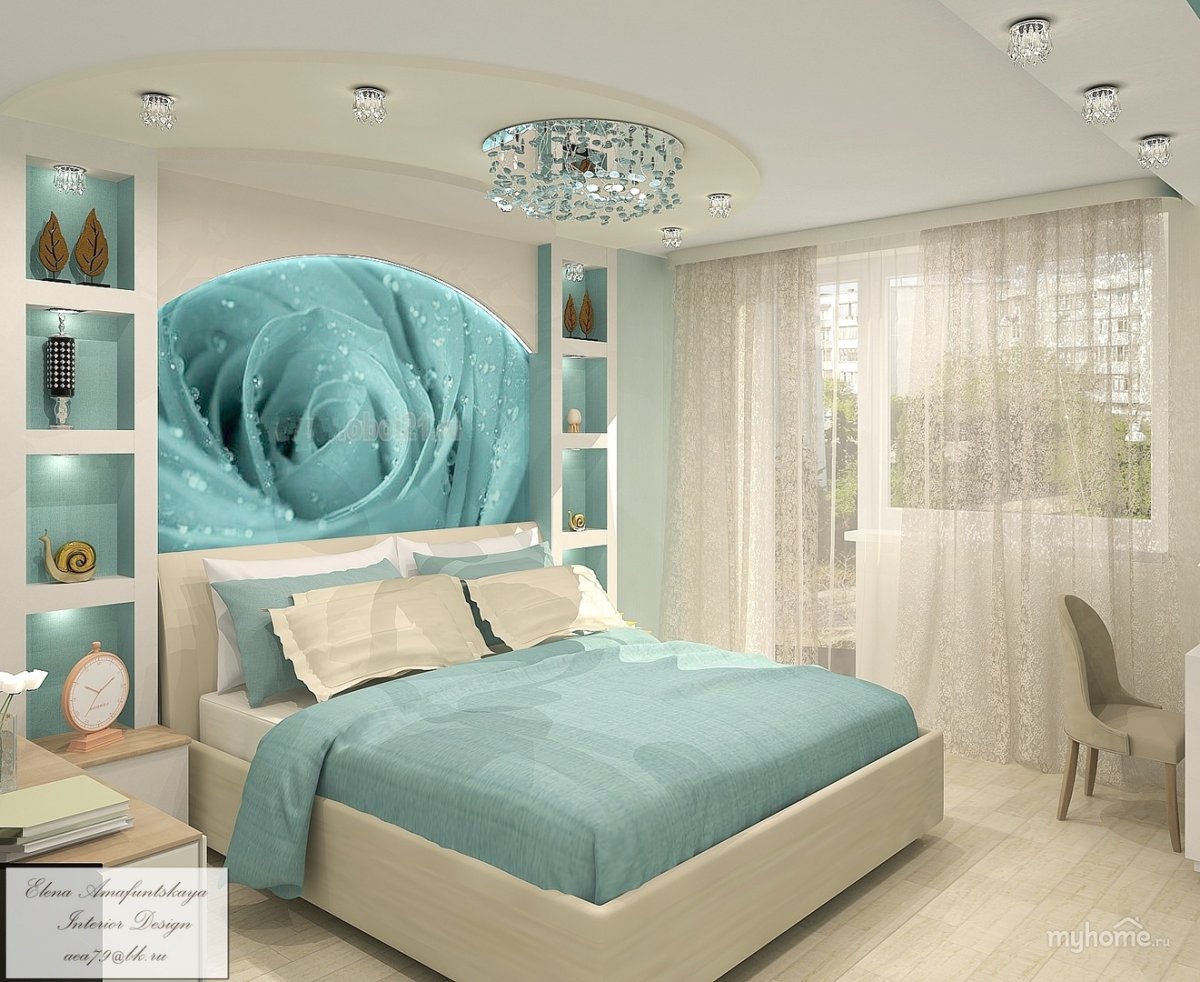 Фреска в спальню бирюза
