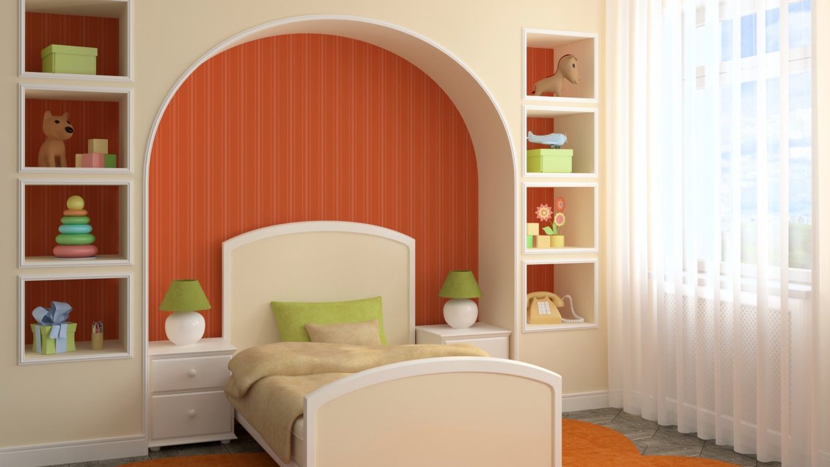 Ниша из гипсокартона в спальне детской