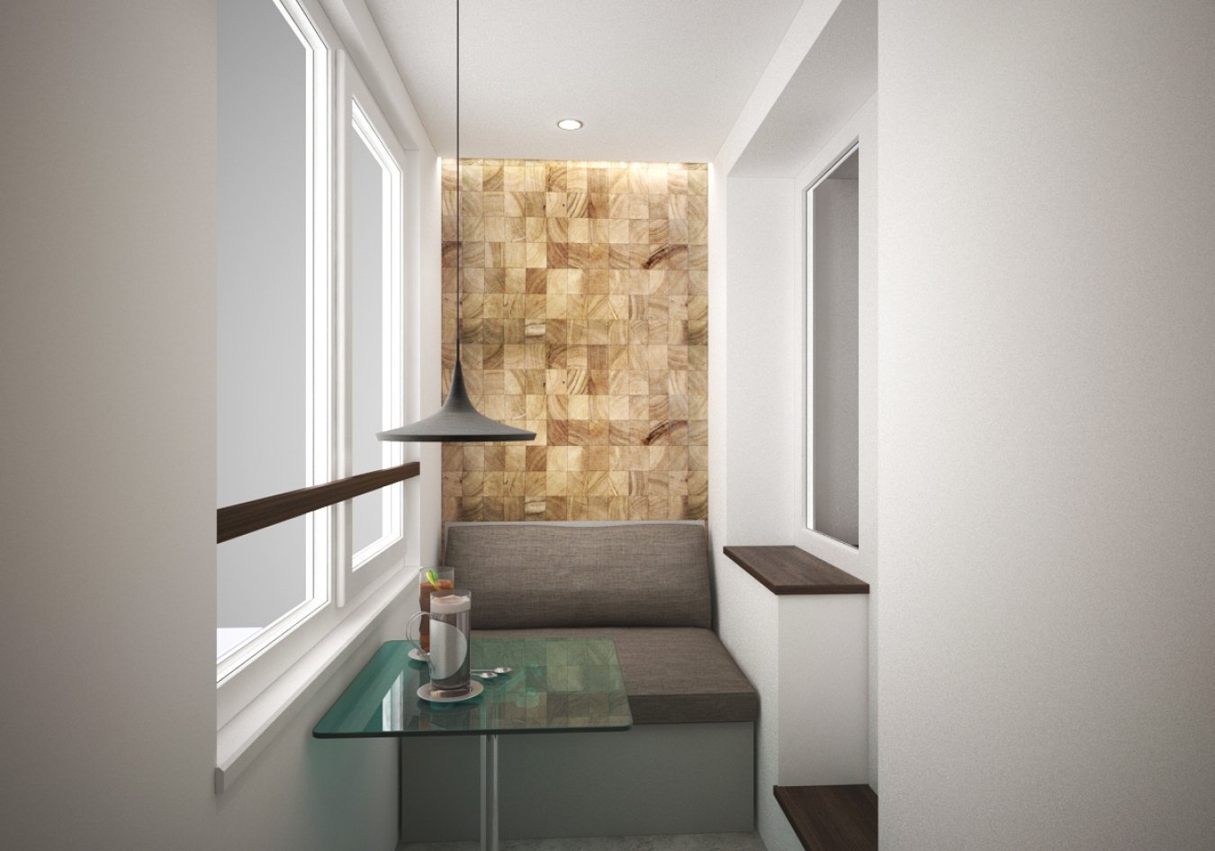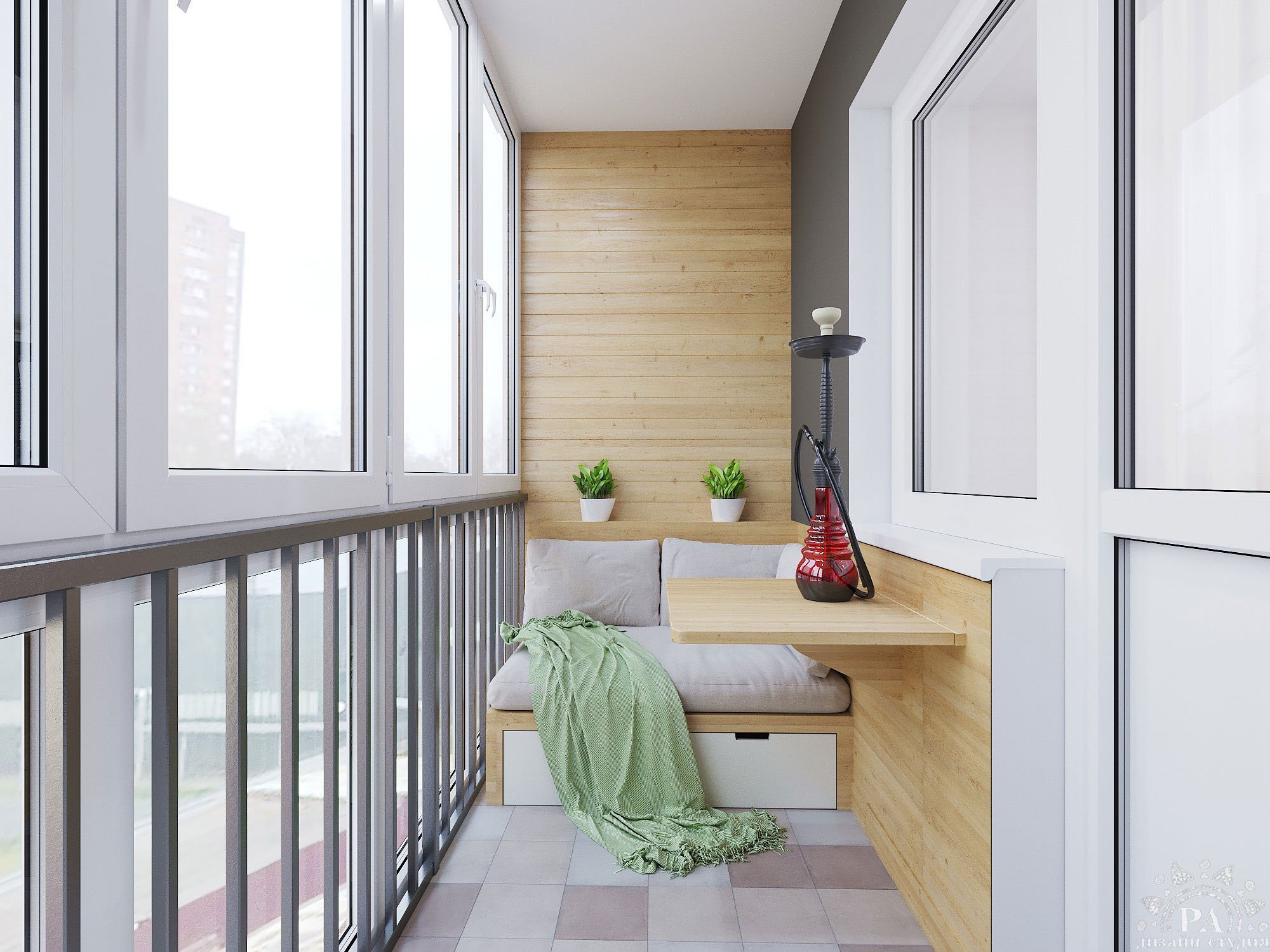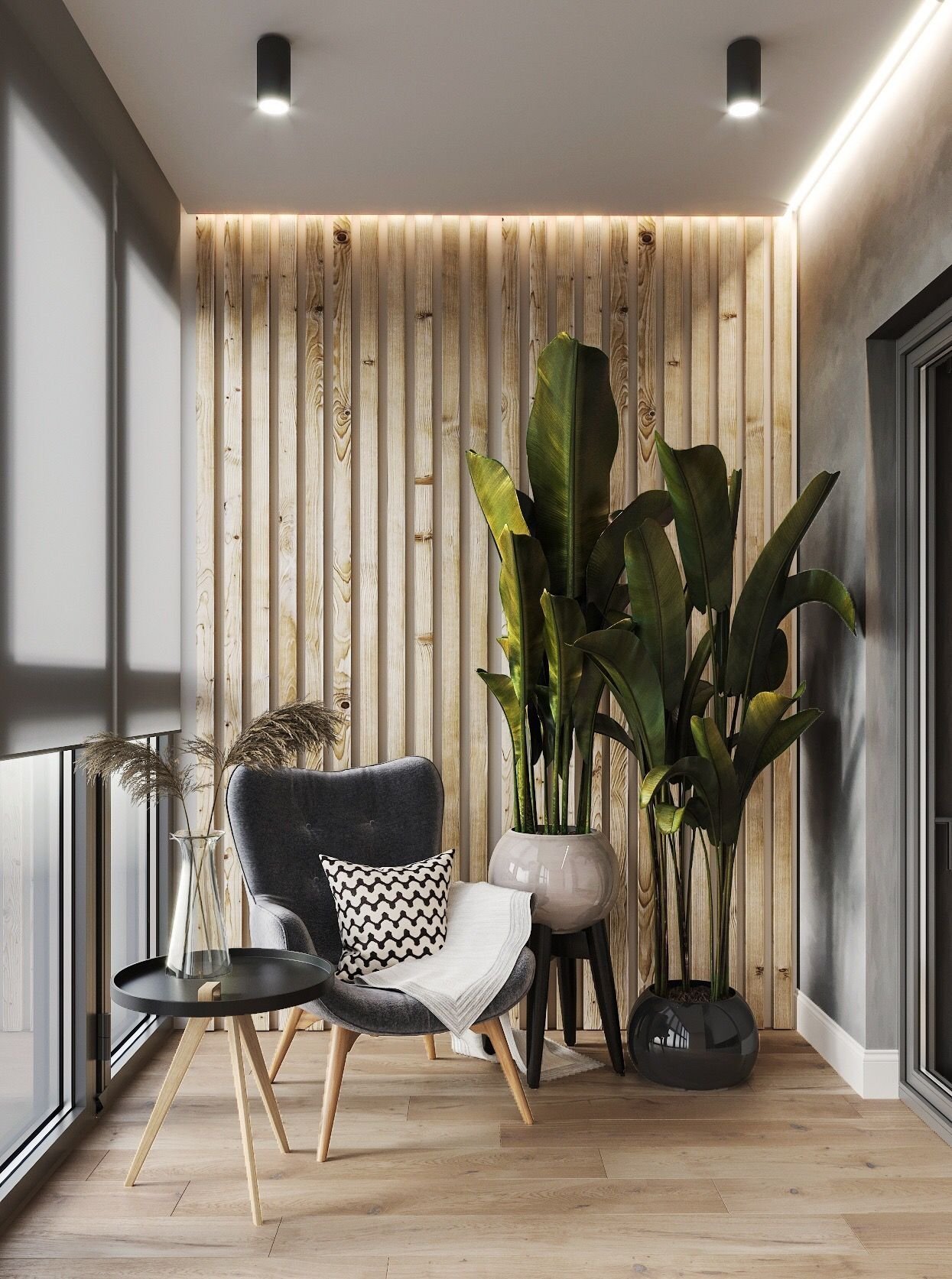 Лоджия песочный дизайн в интерьере с крест деревянными вставками