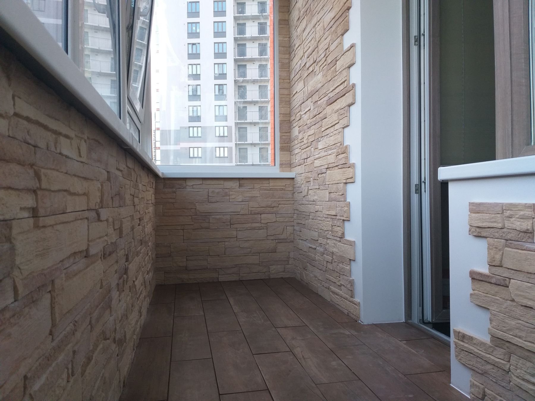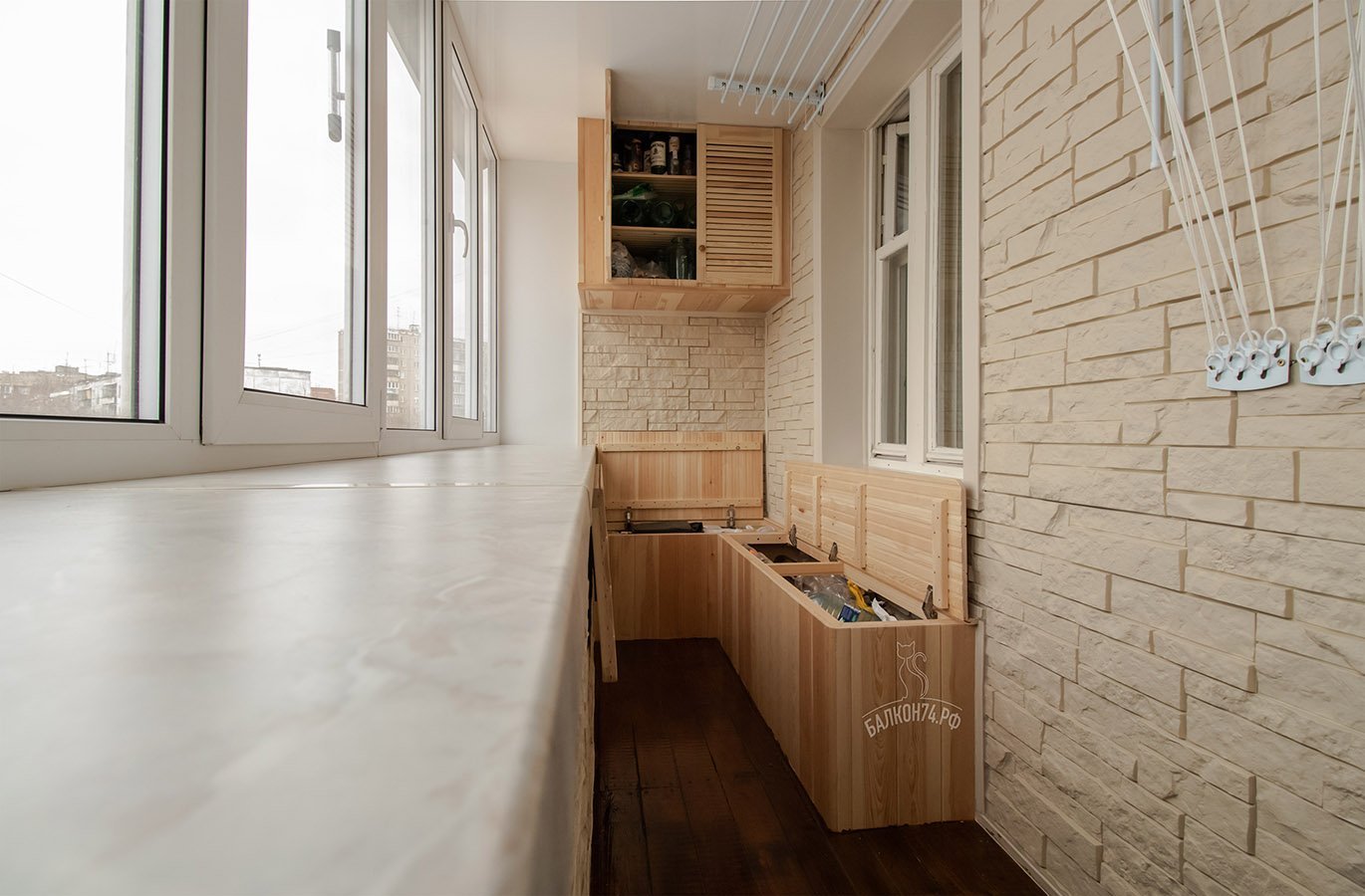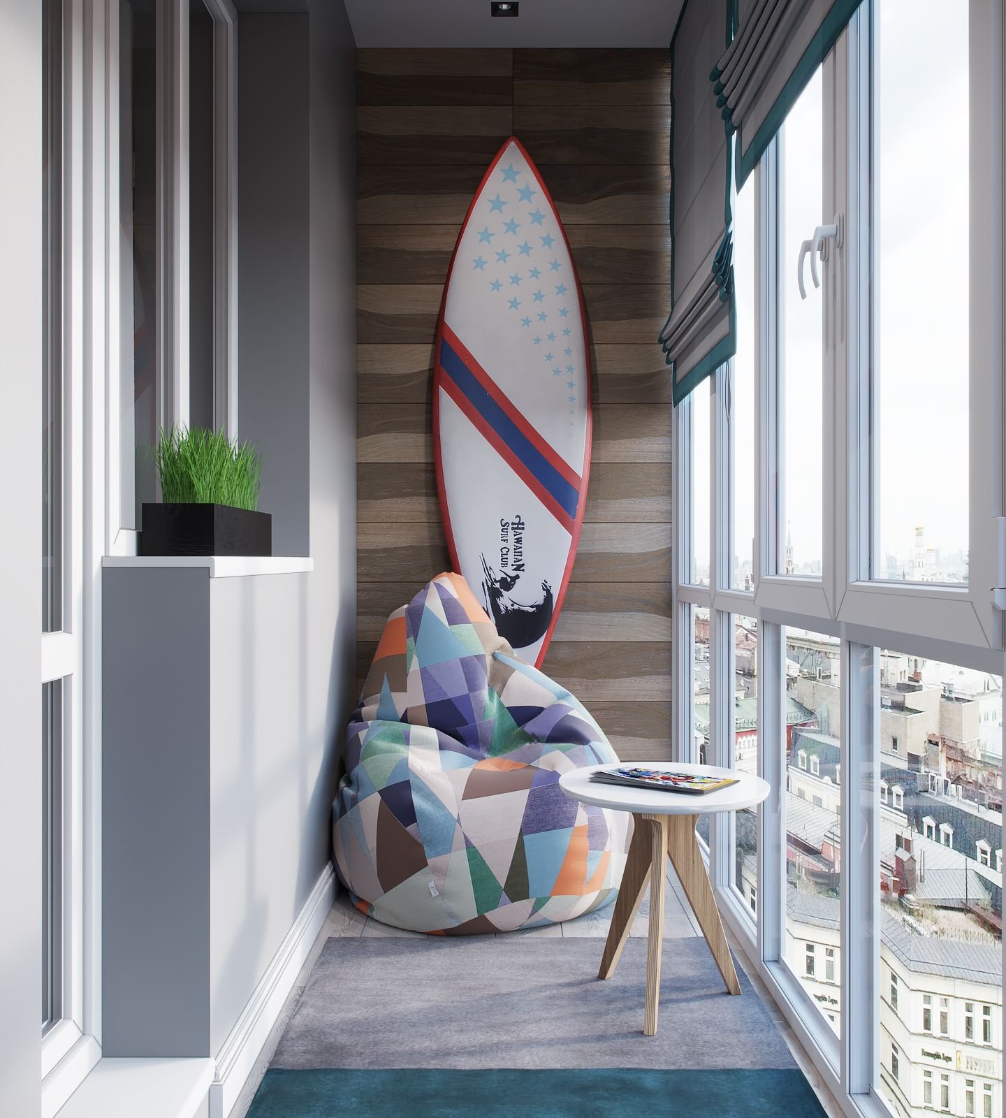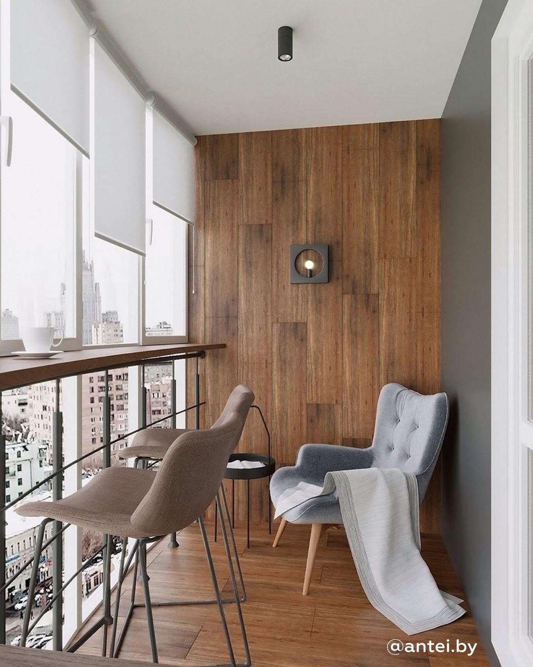 Лоджия песочный дизайн в интерьере с крест деревянными вставками