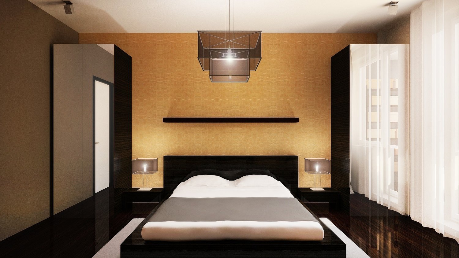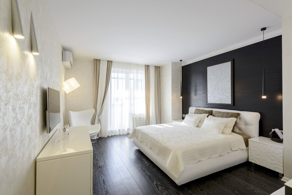 Спальня из темным полом