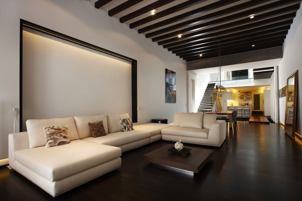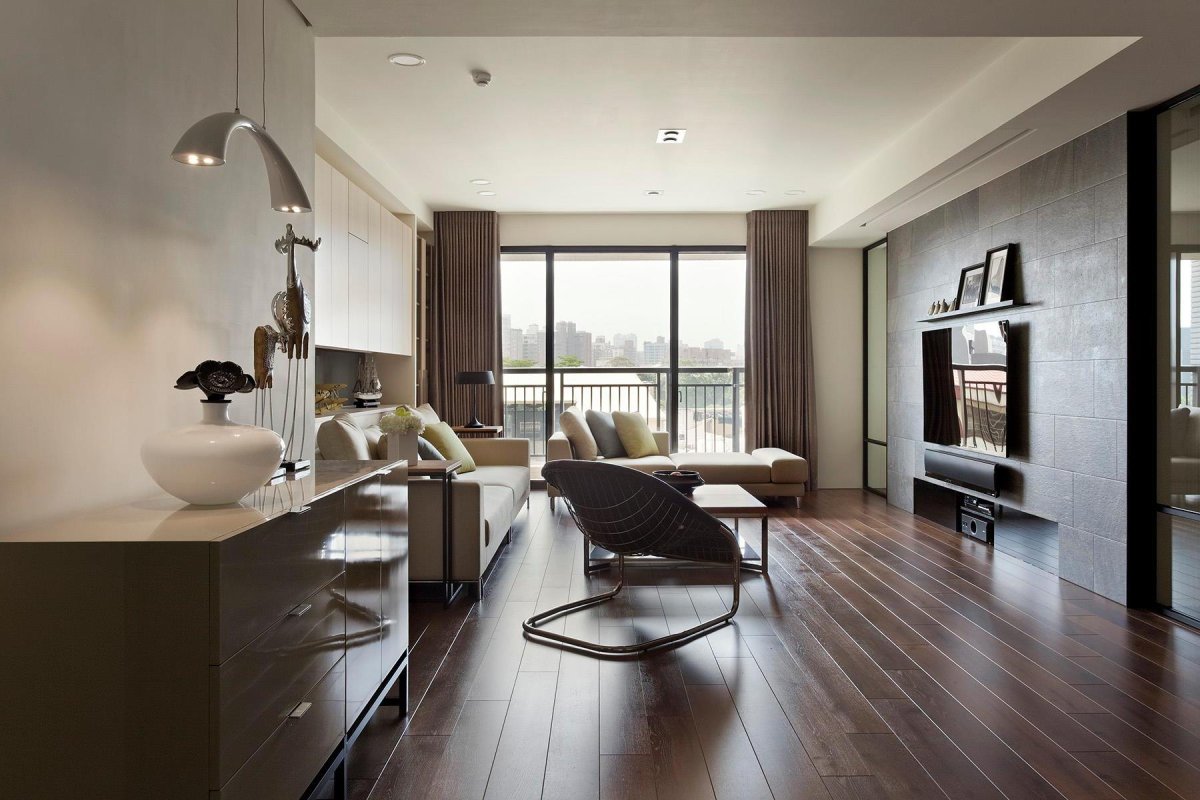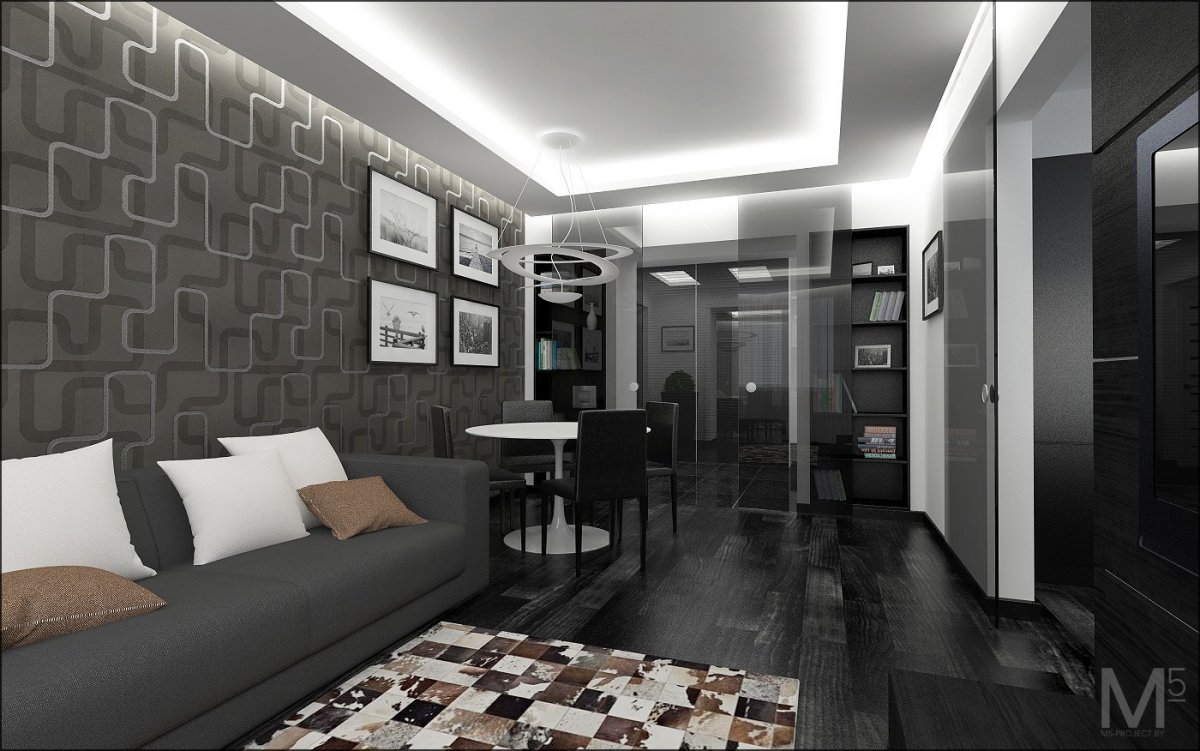 Интерьер квартиры с темным полом