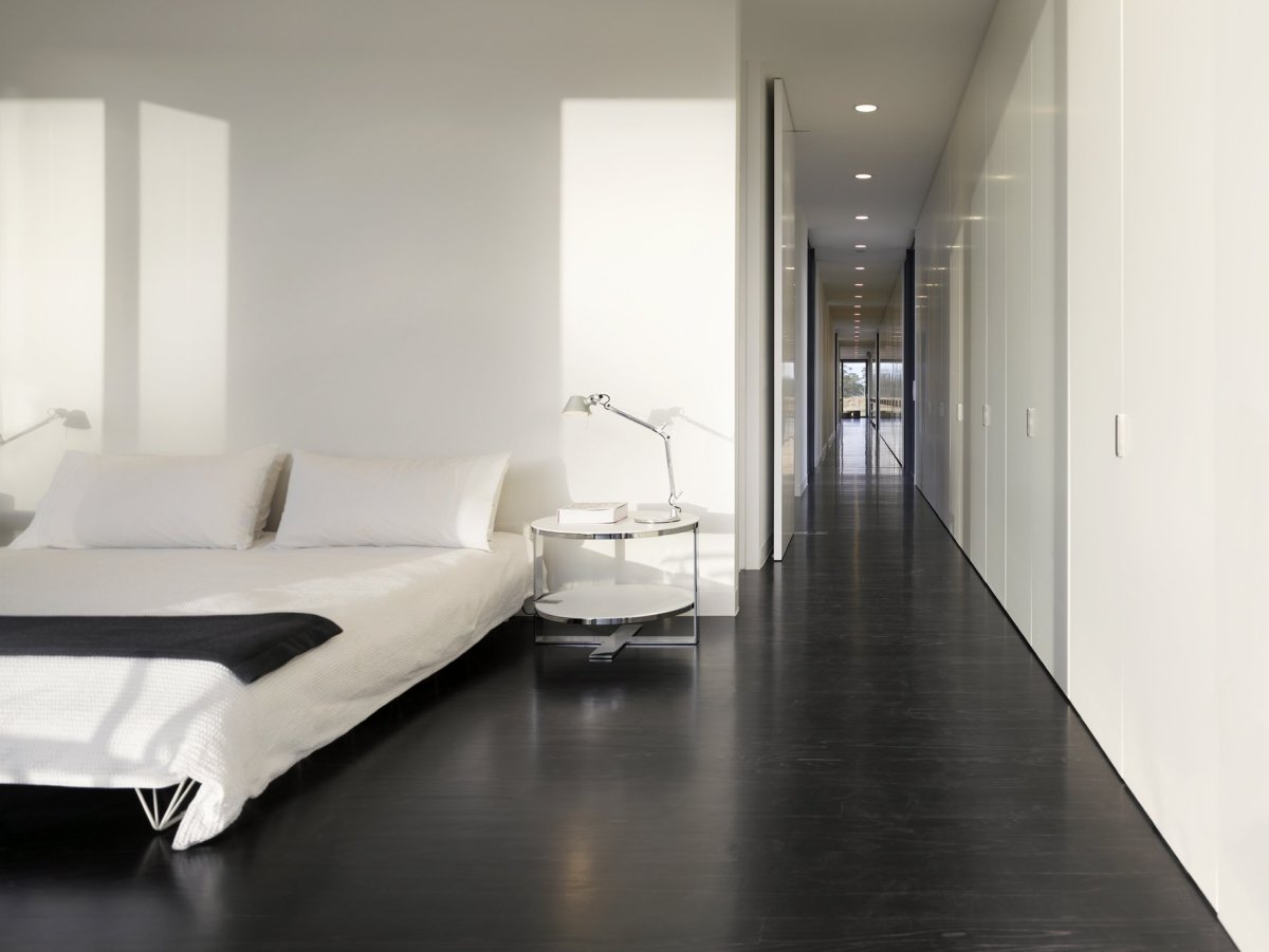 Спальня с темным полом