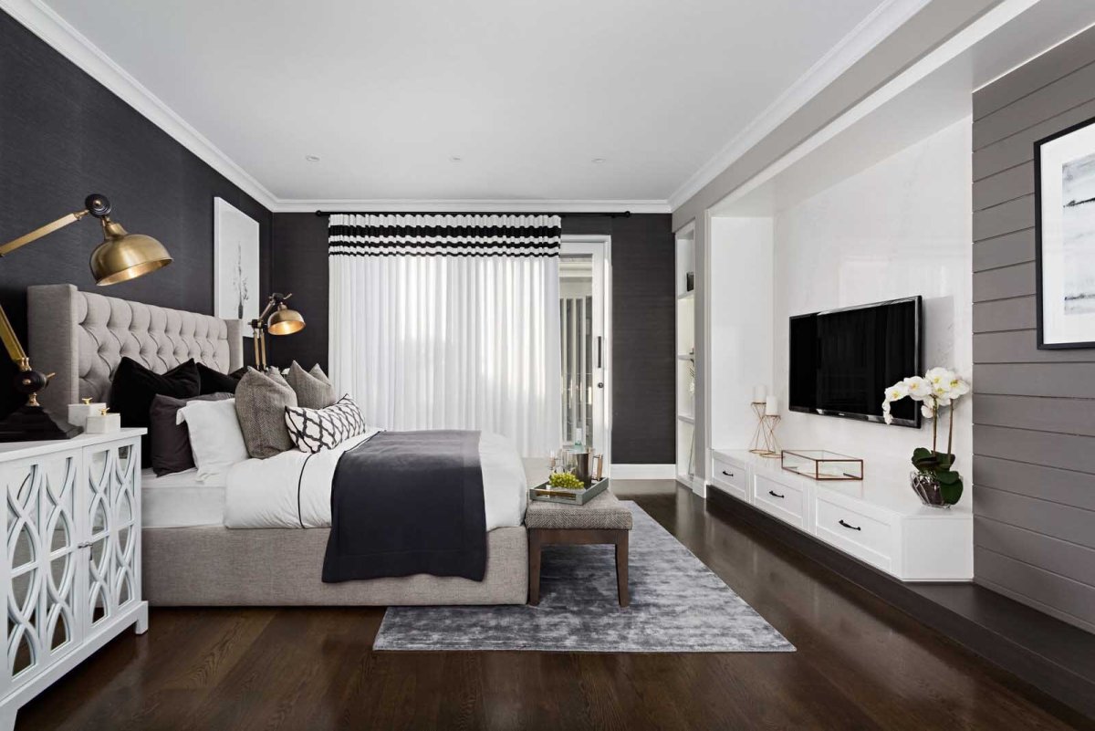 Спальня с темными полами