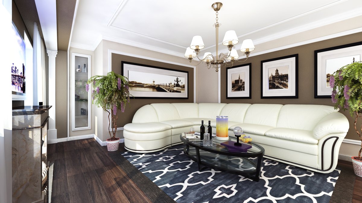 Гостиная в белом и коричневом цвете
