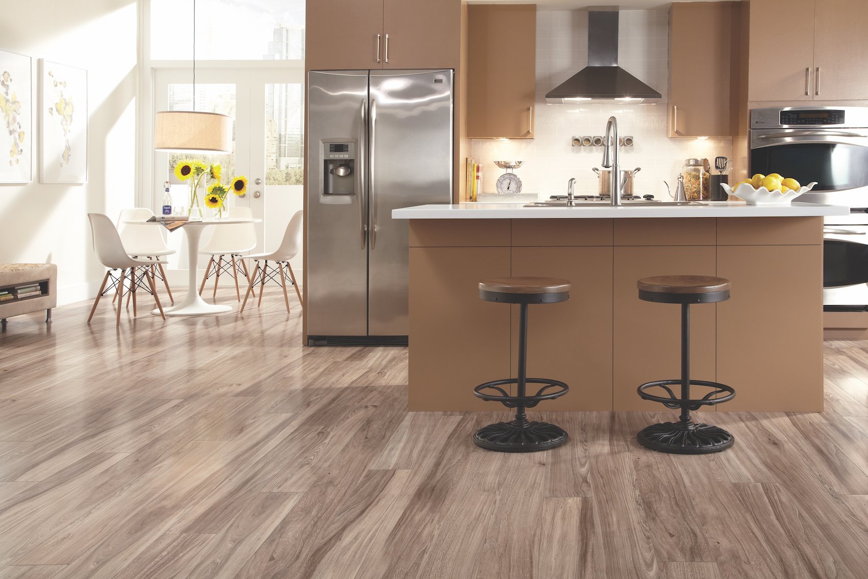 Светлый ламинат на кухне