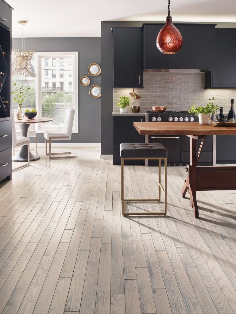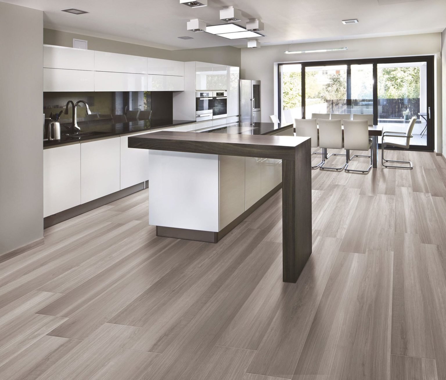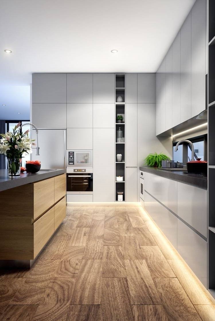 Белая кухня пол под дерево