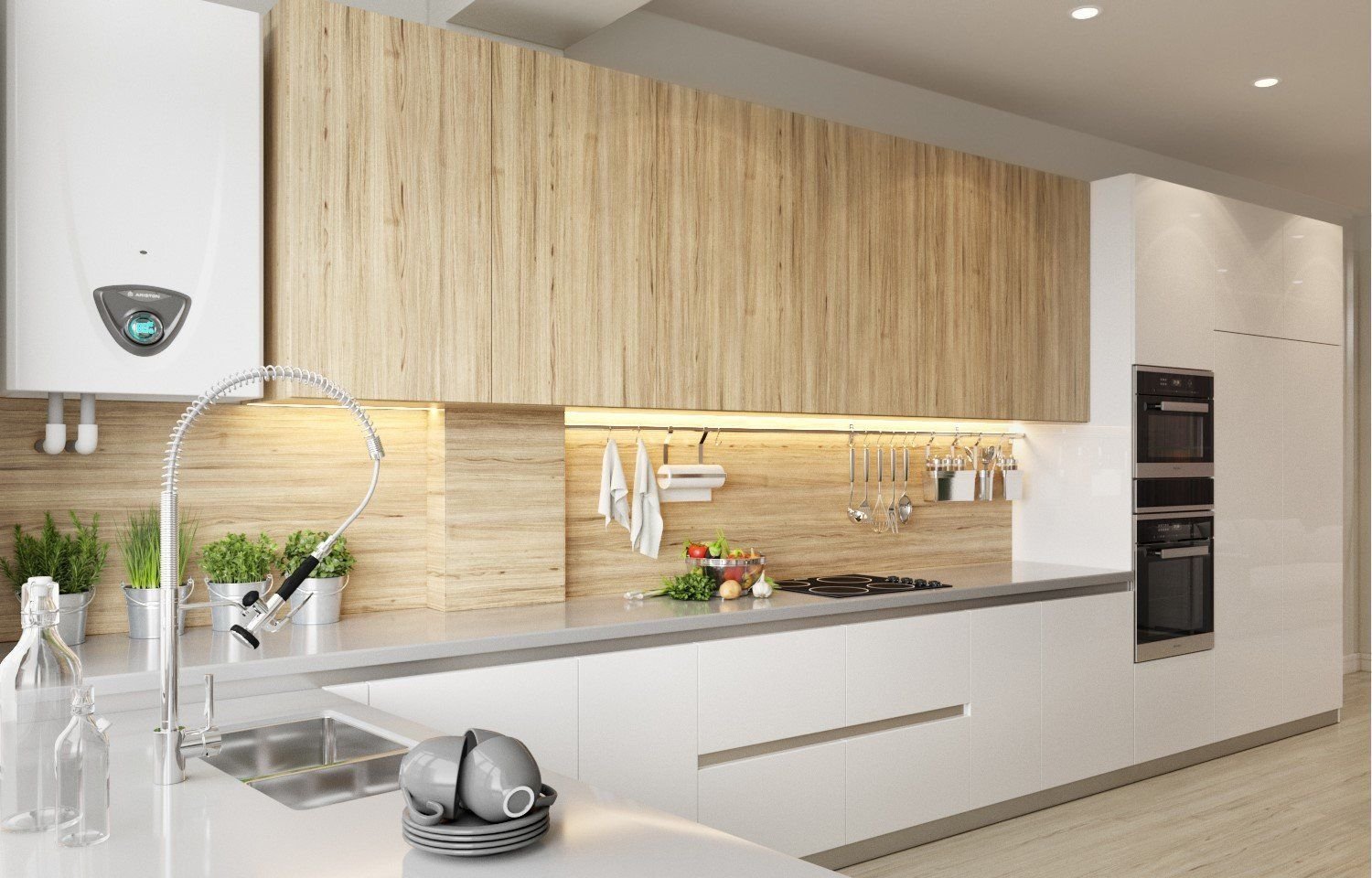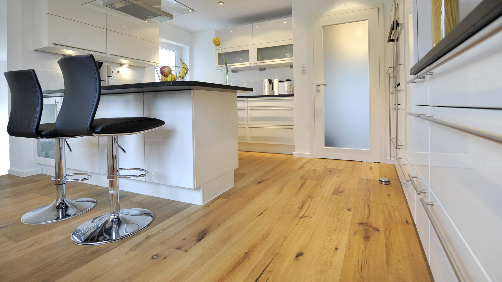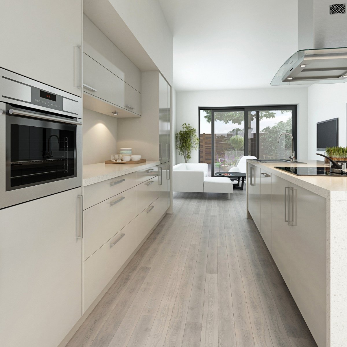 Белая кухня пол под дерево