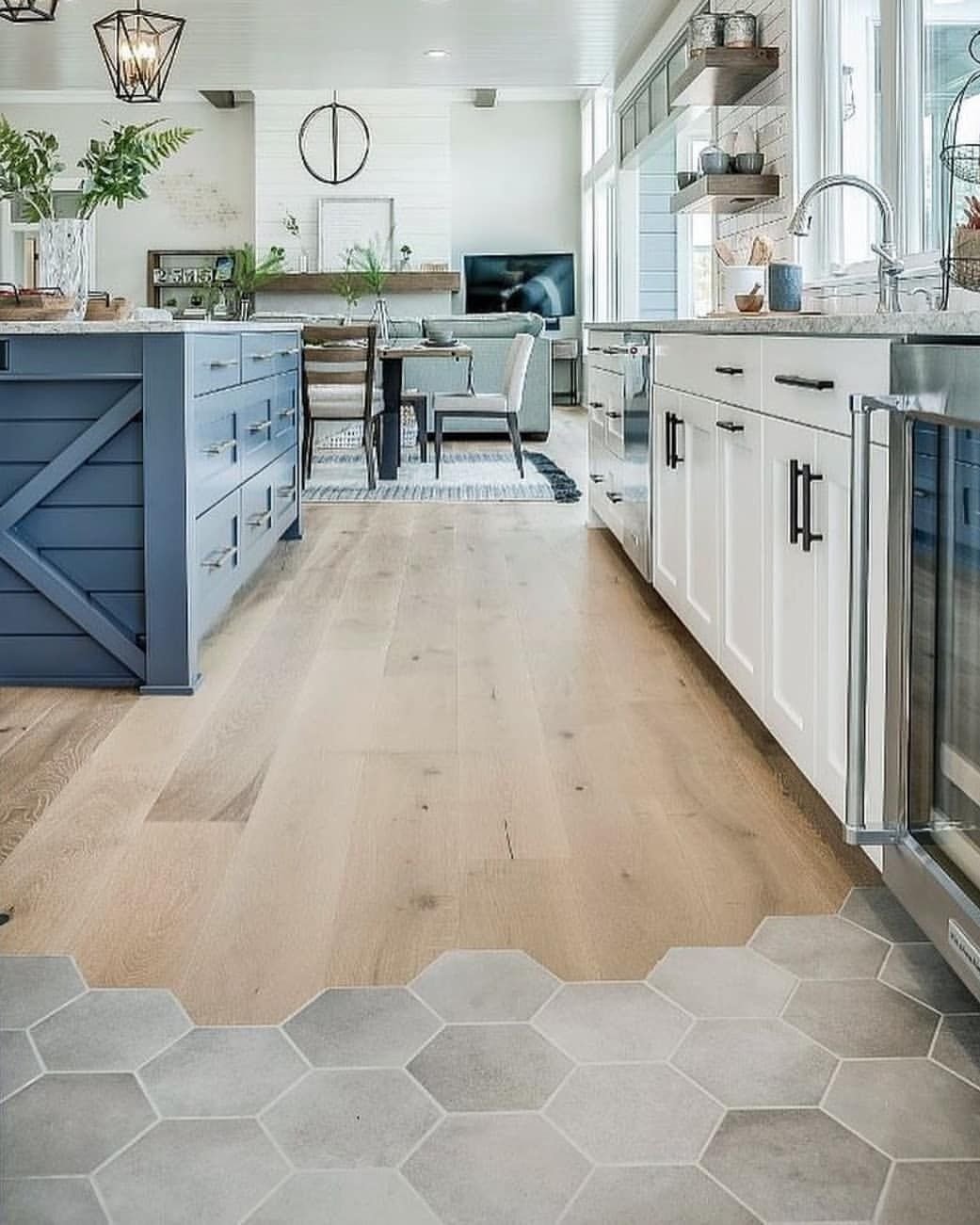 Зонирование пола кухня гостиная