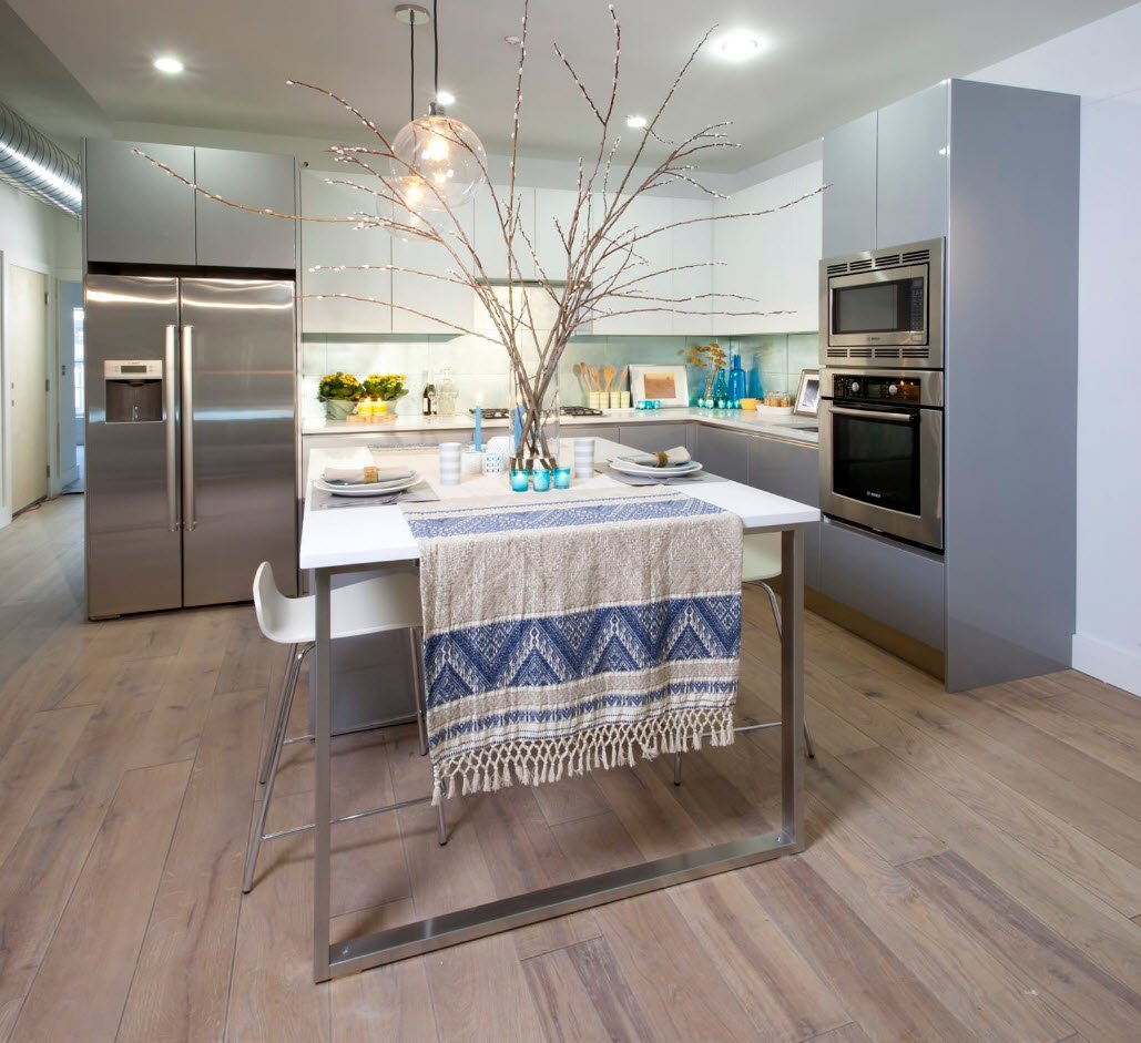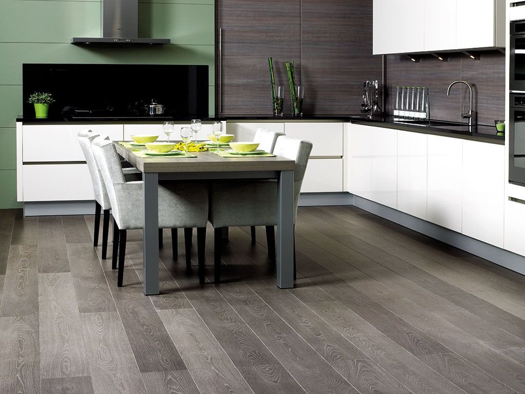 Серый ламинат на кухне