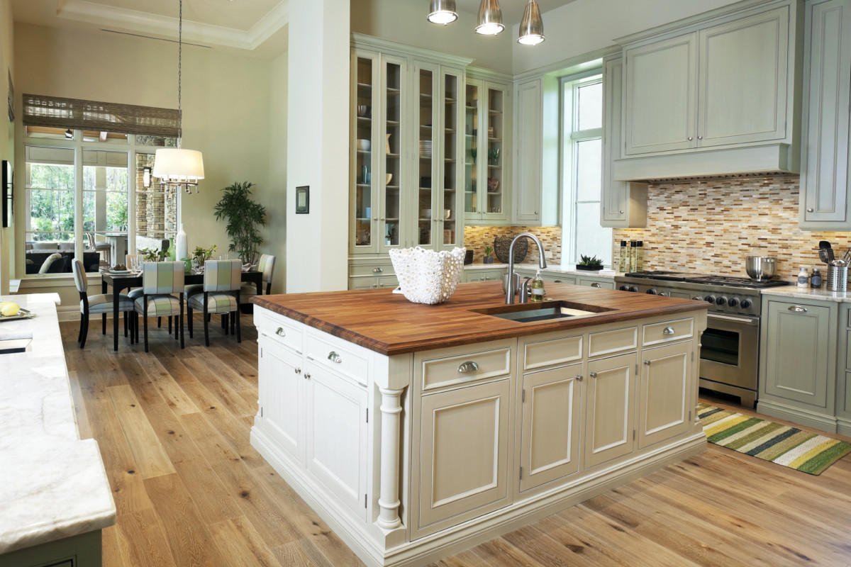 Кухня с деревянными полами
