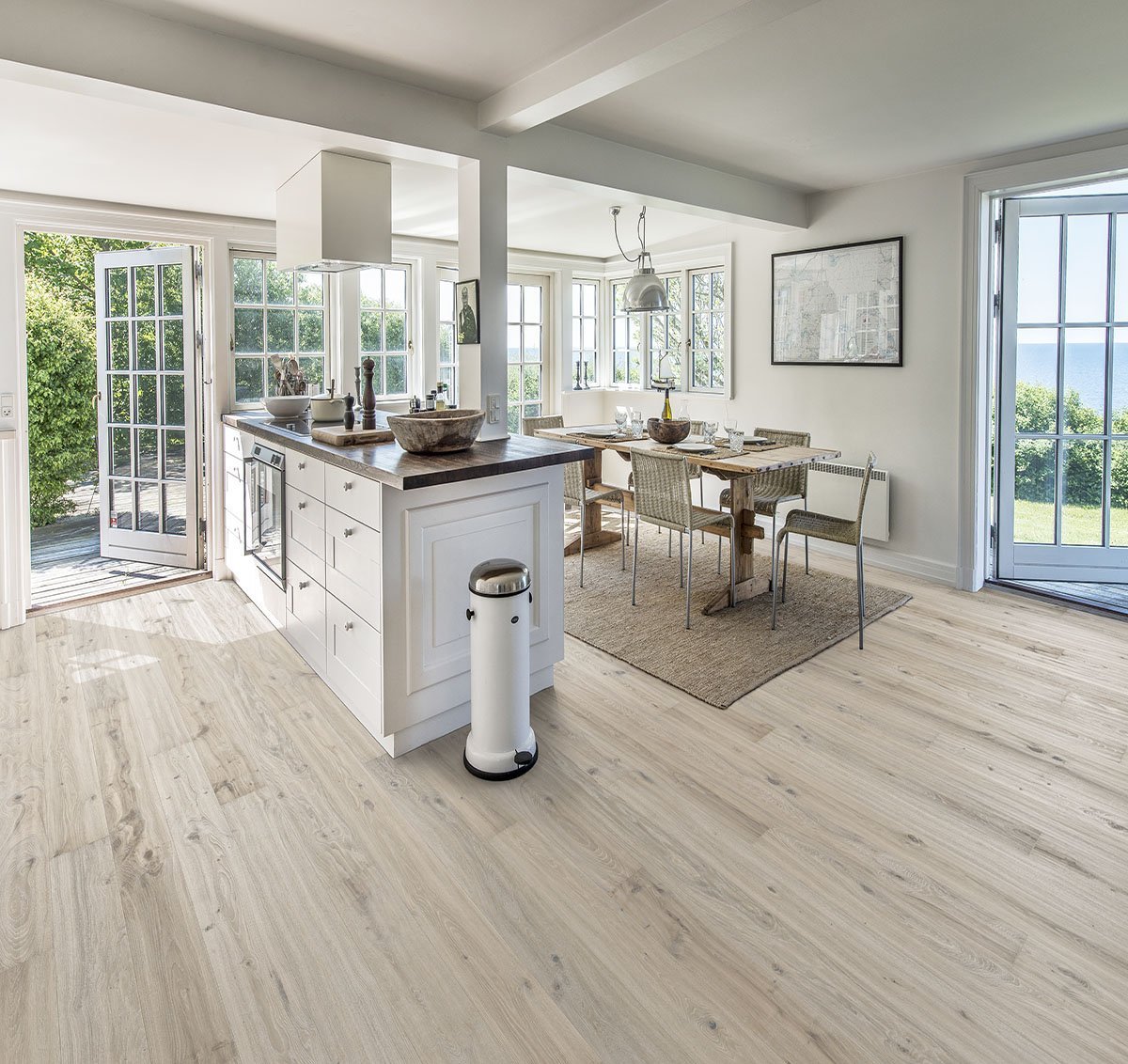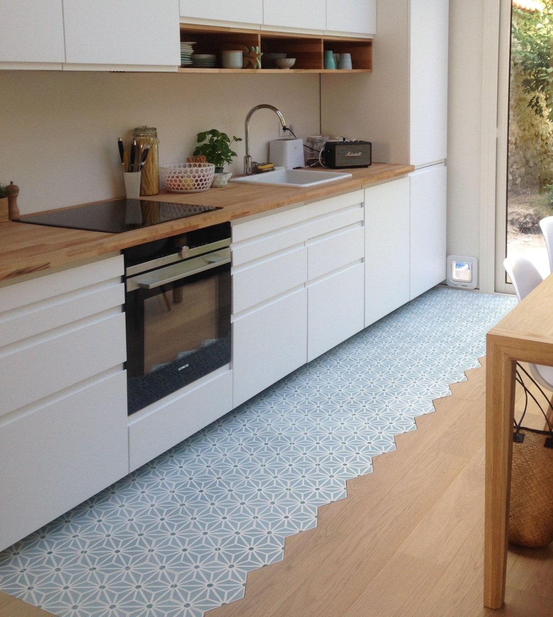 Белый пол на кухне