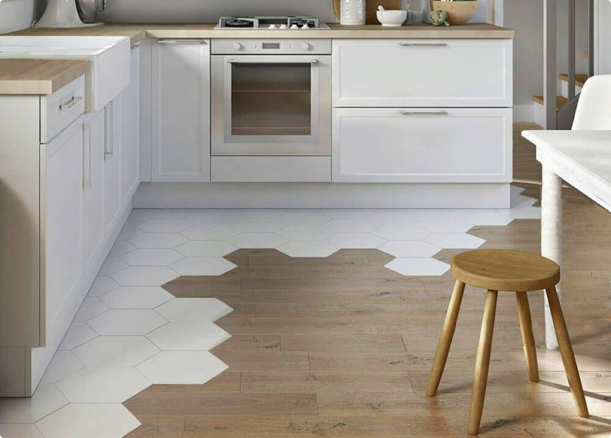 Комбинированный пол на кухне плитка и ламинат