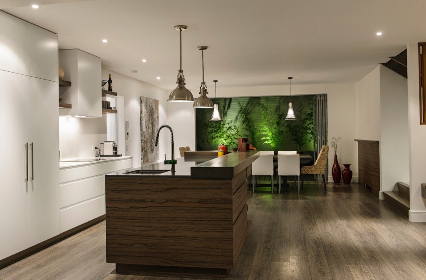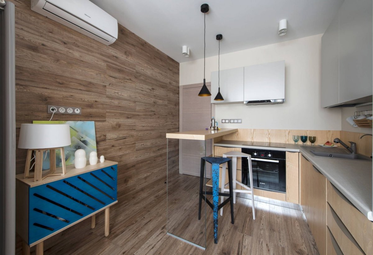 Ламинат на стене в интерьере кухни