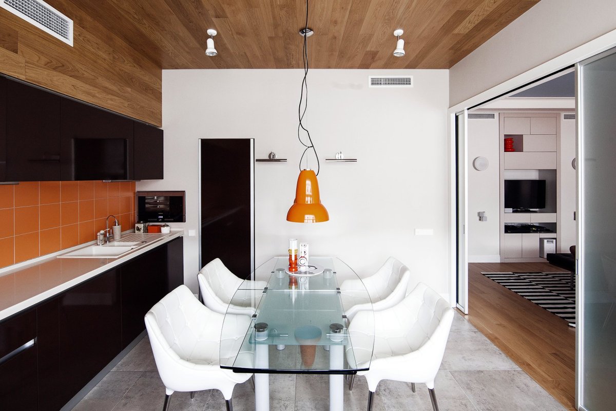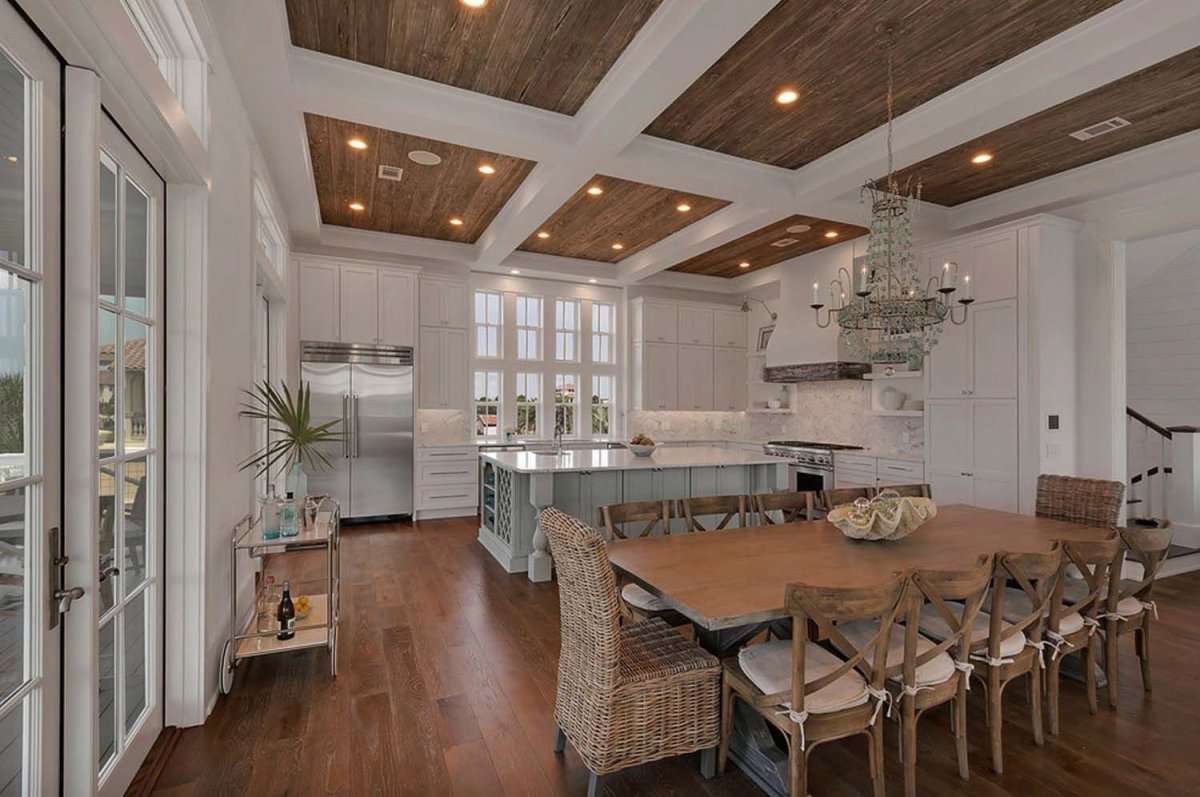 Ламинат на потолке в интерьере кухни