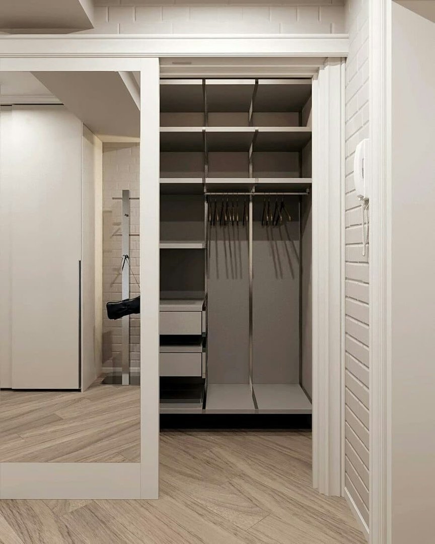 Гардеробная для верхней одежды и обуви в кладовке идеи