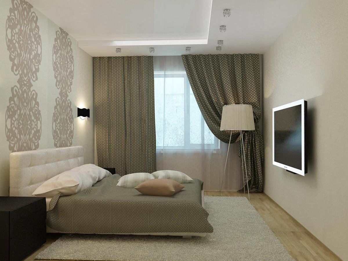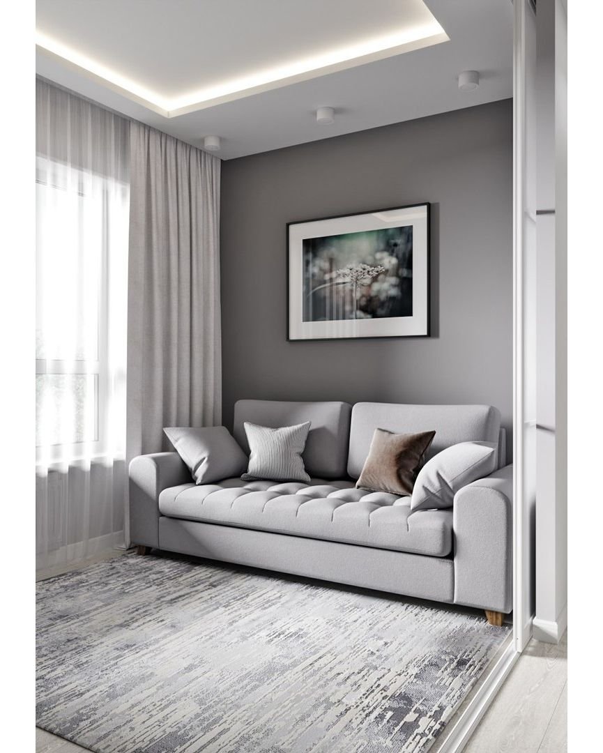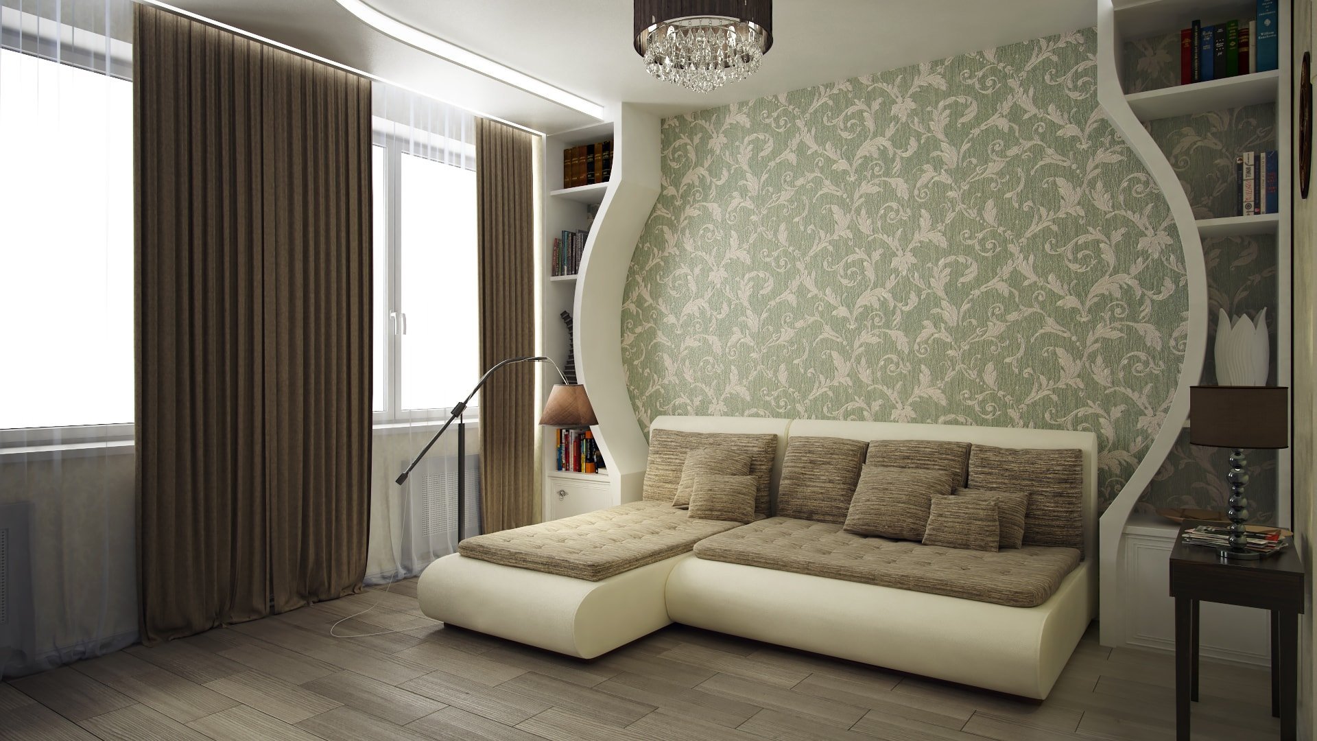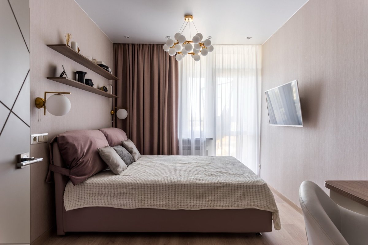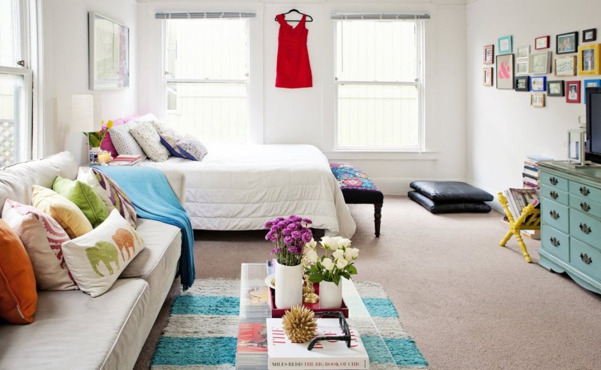 Интерьер однокомнатной квартиры с кроватью и диваном
