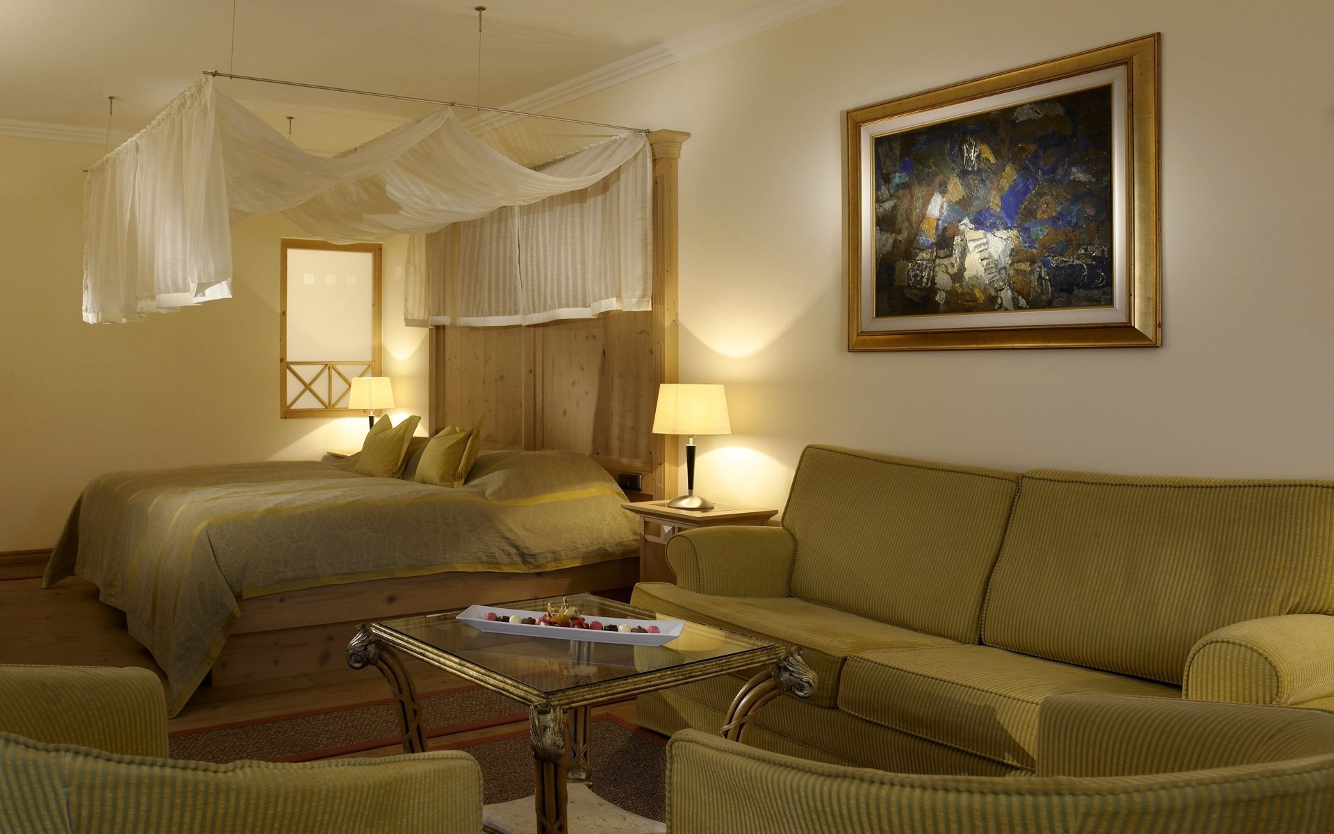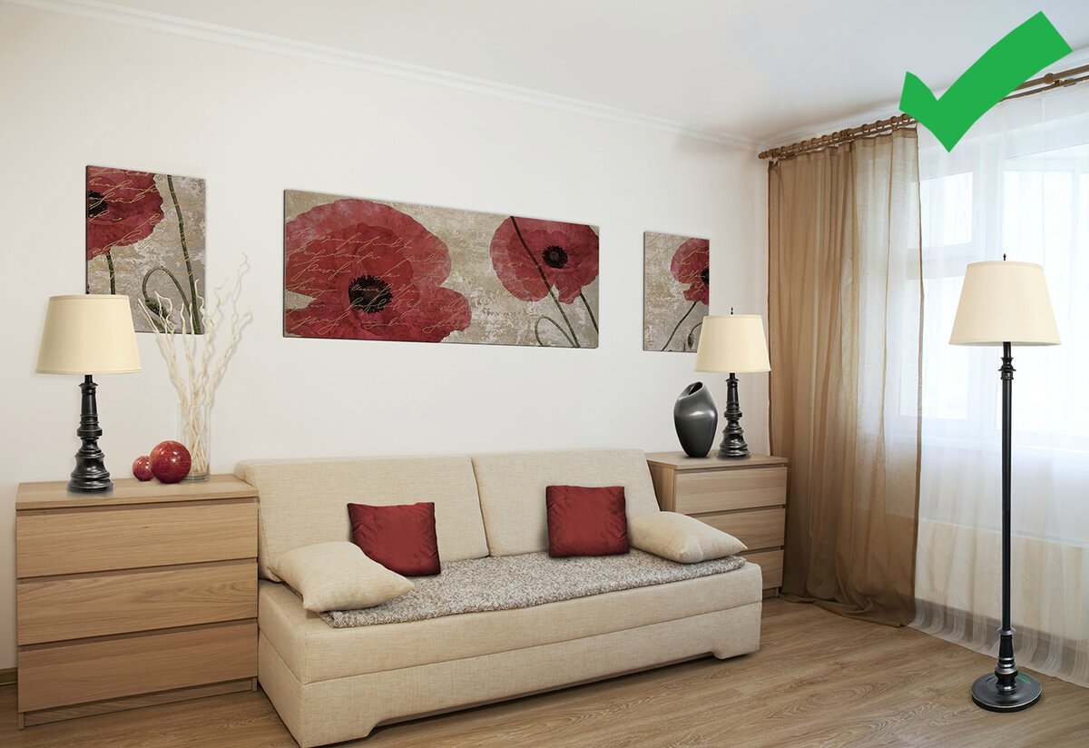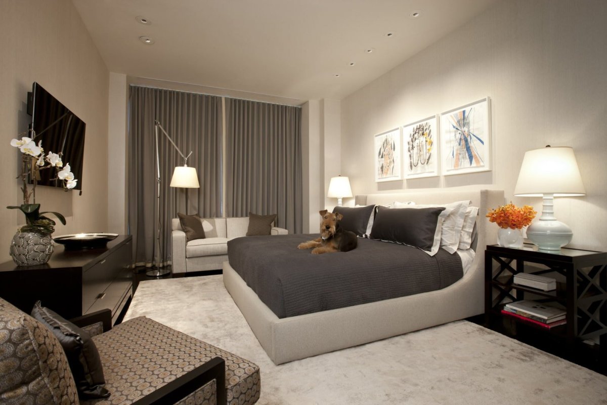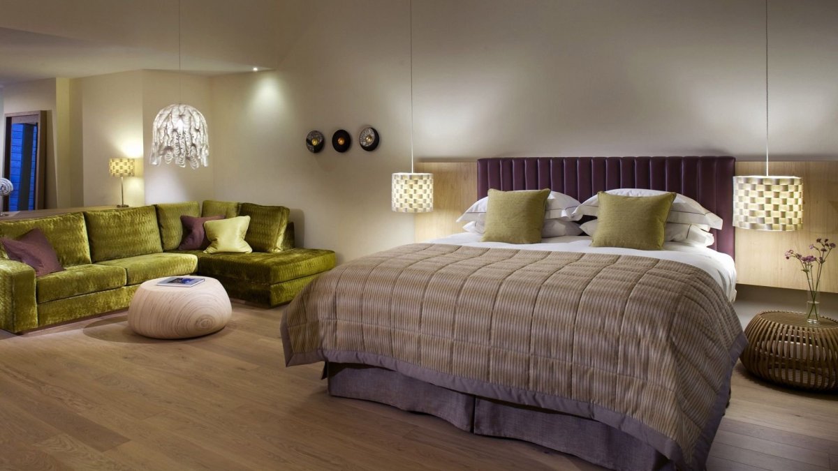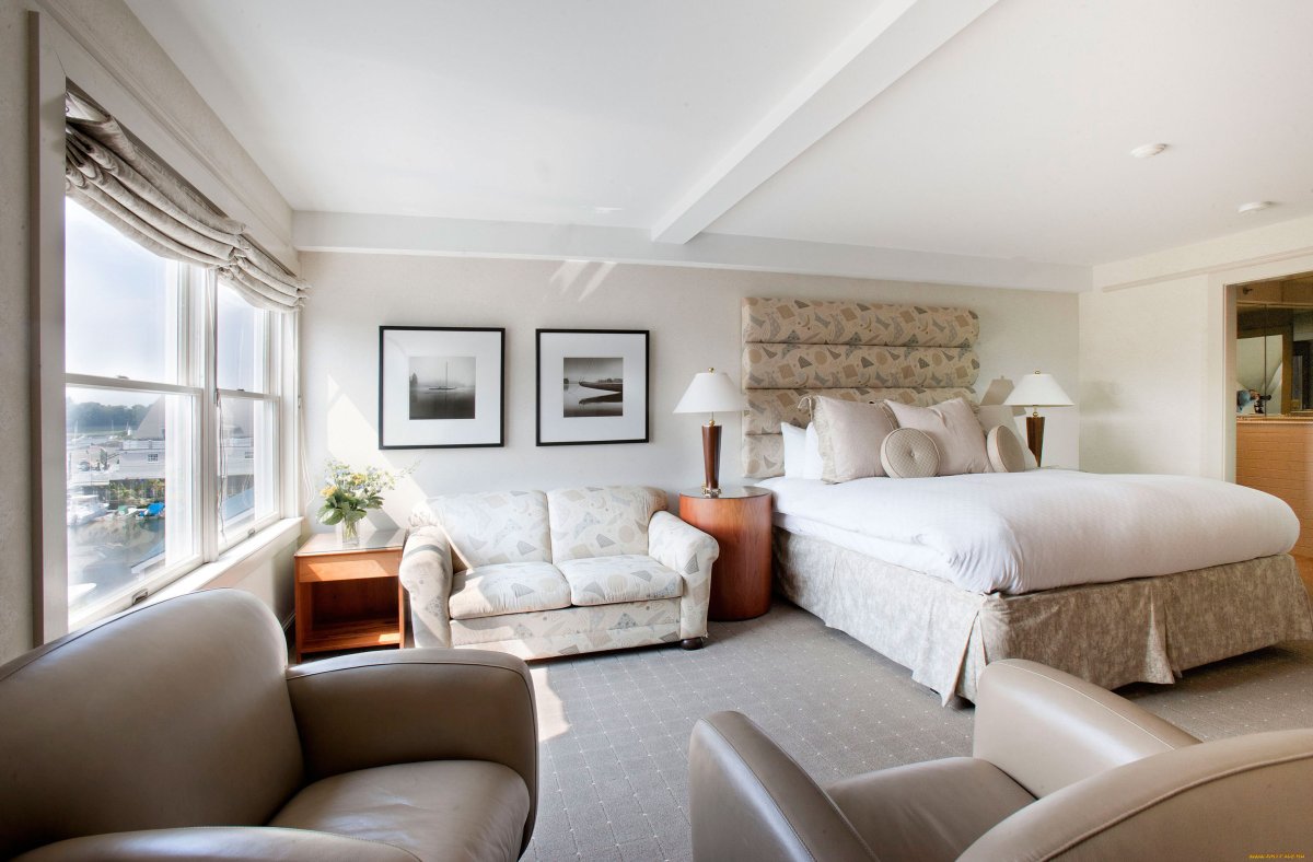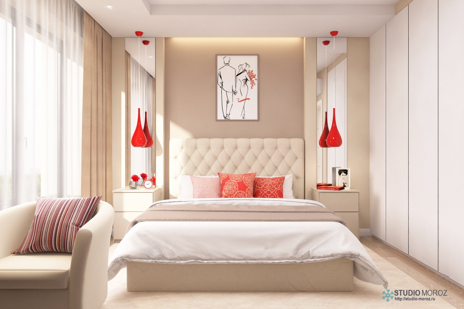 Интерьер однокомнатной квартиры с кроватью и диваном