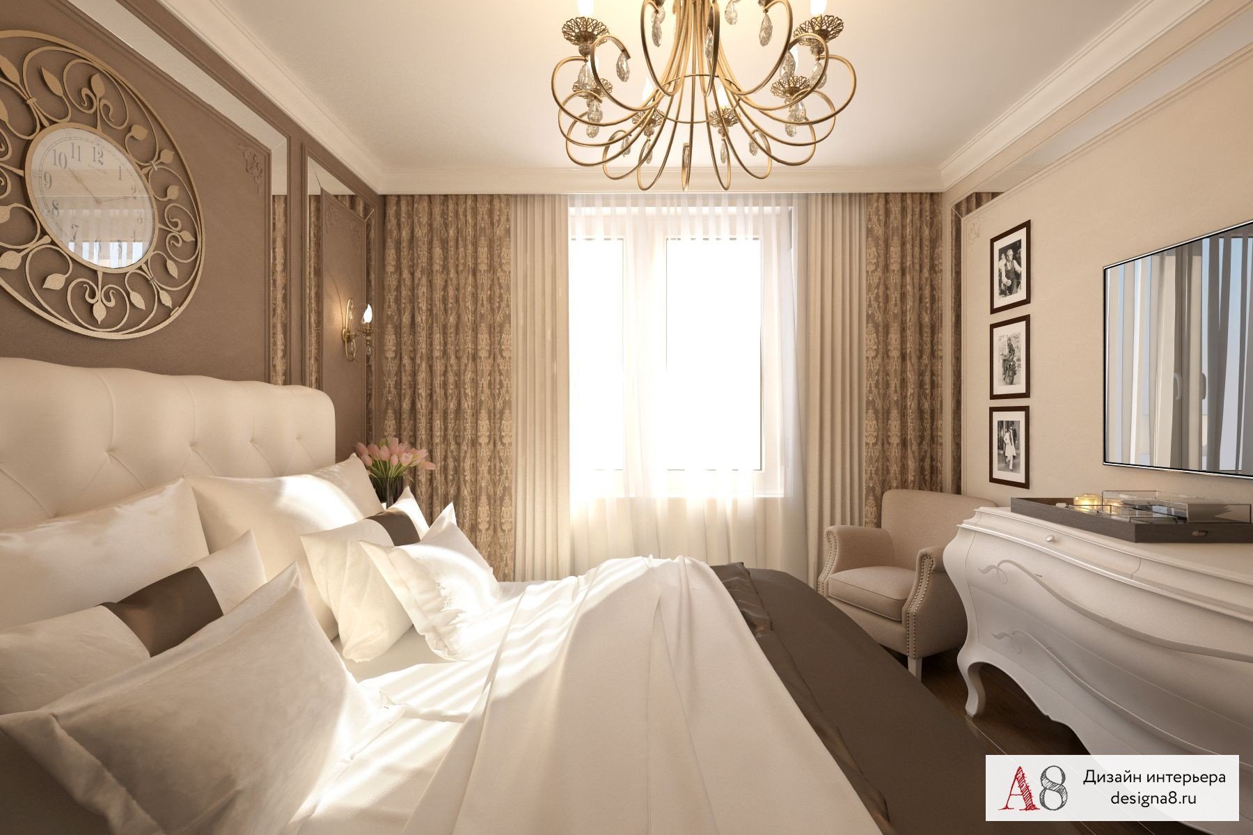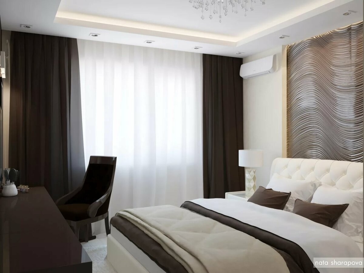 Спальня в бело коричневых тонах
