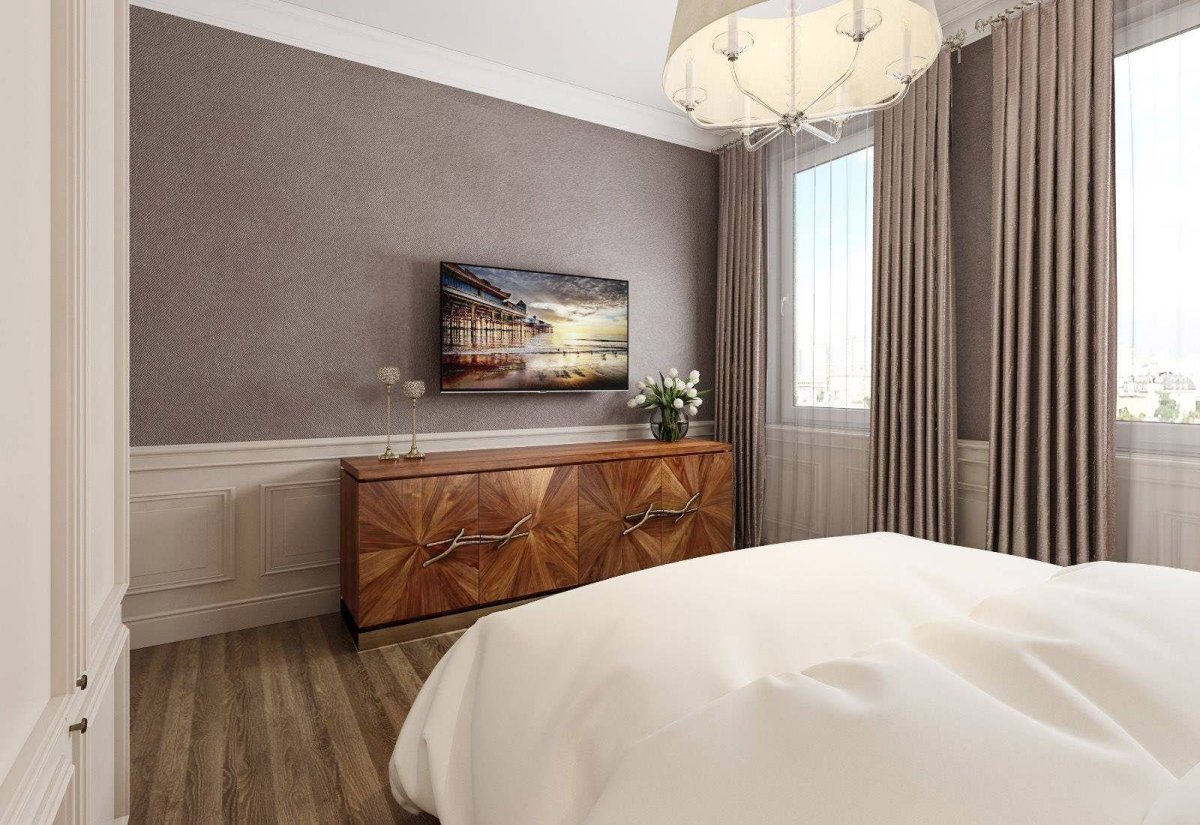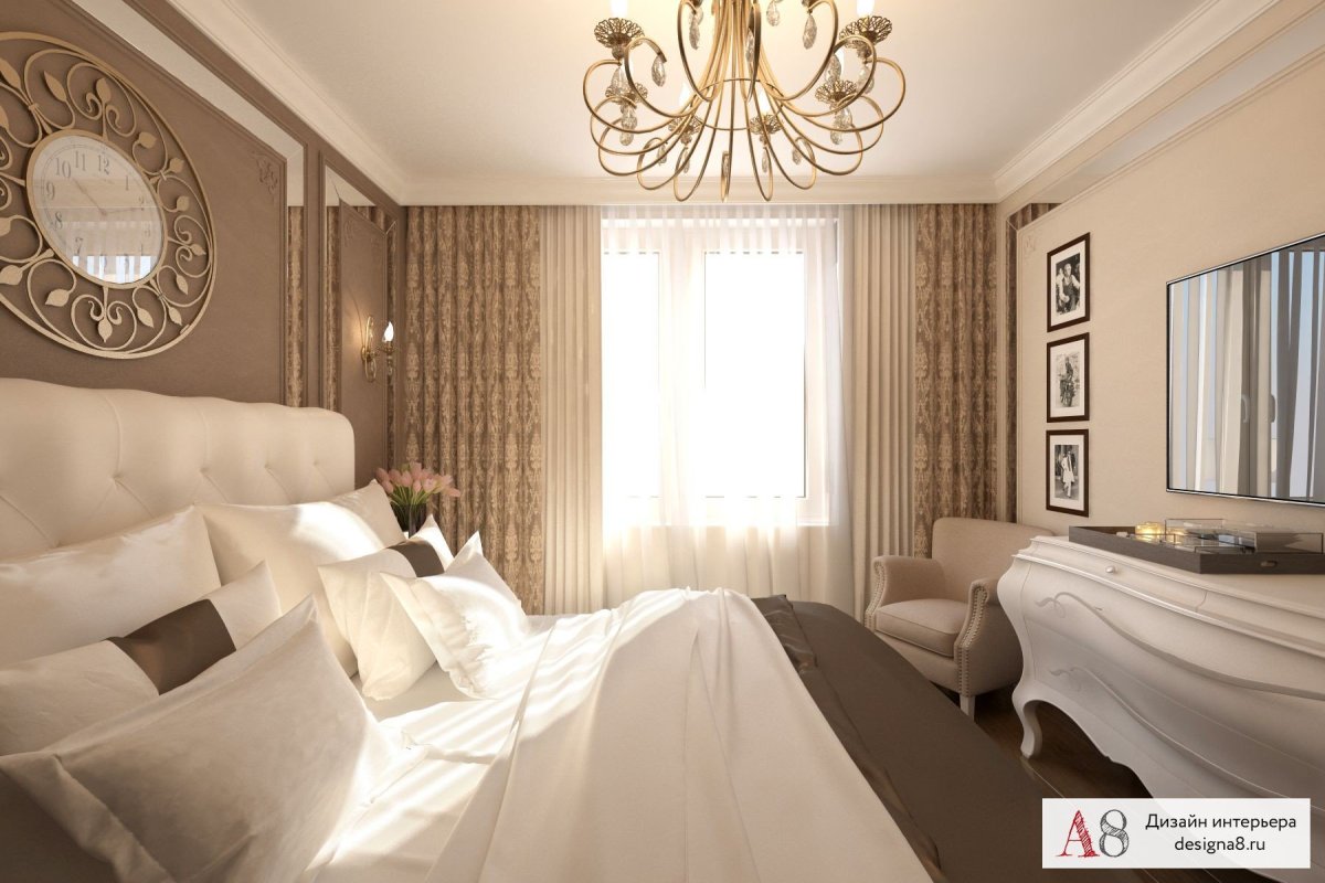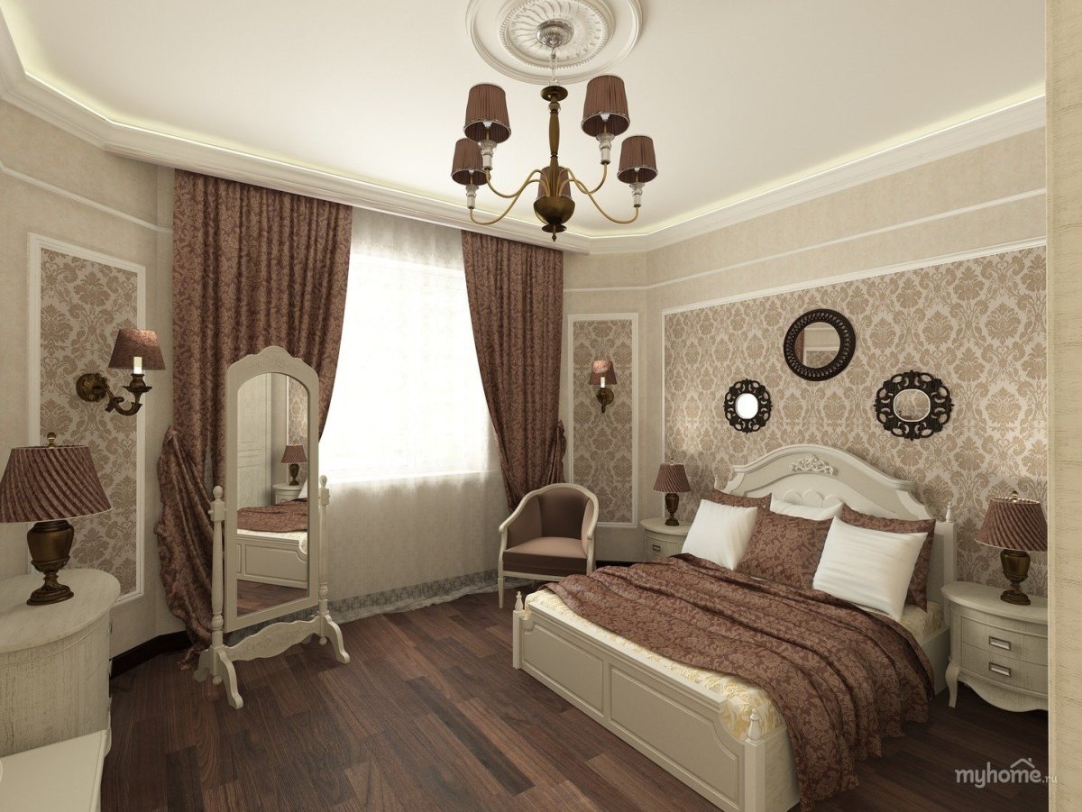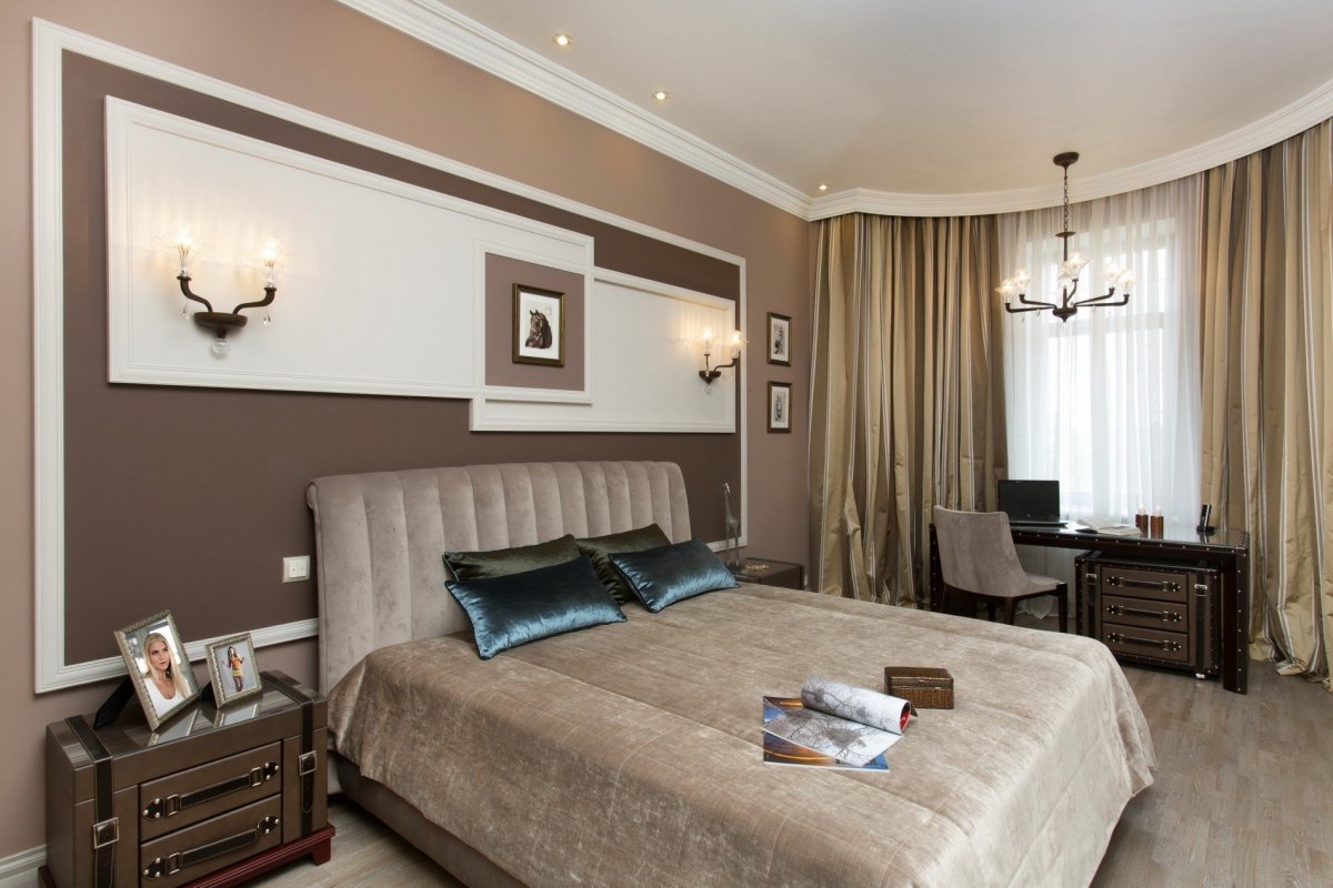 Спальня в классическом стиле коричневых тонов