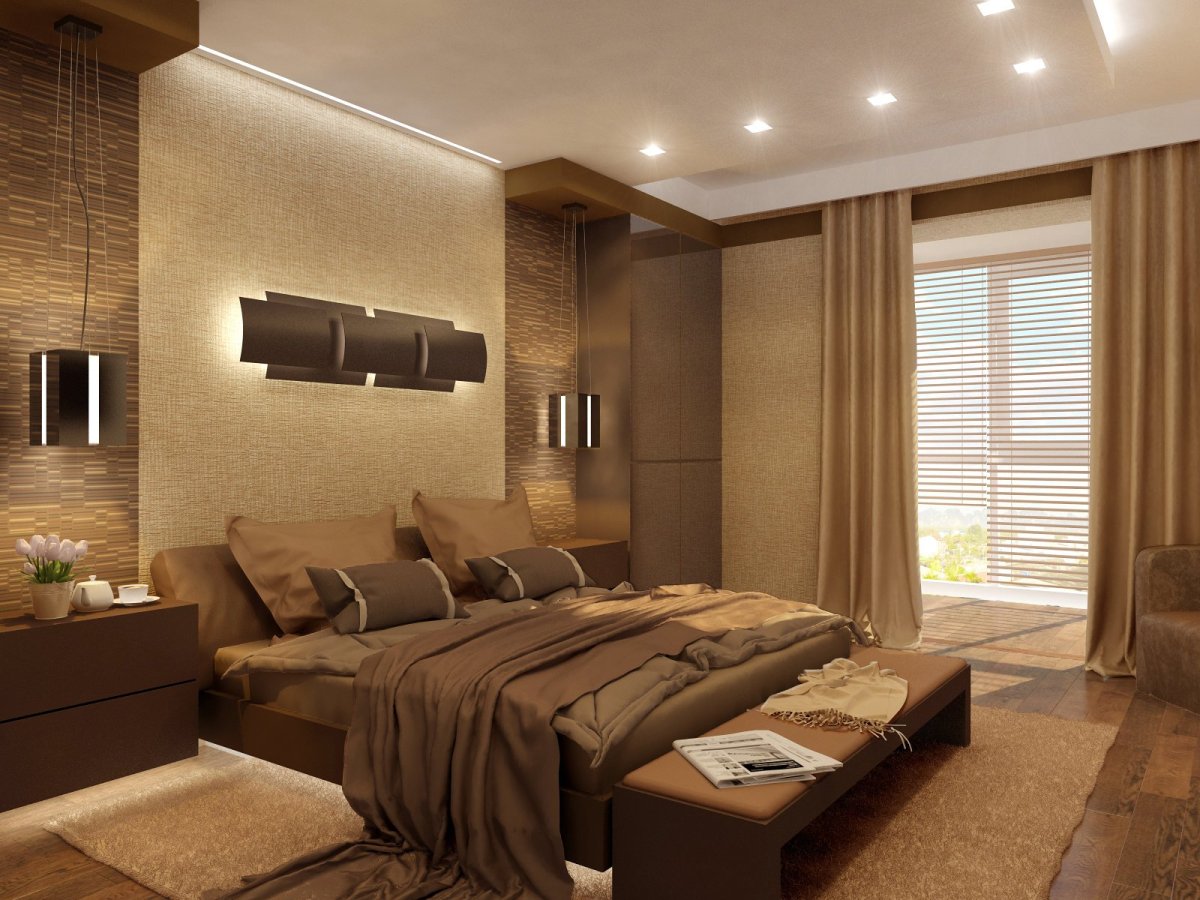 Спальня в коричневых тонах