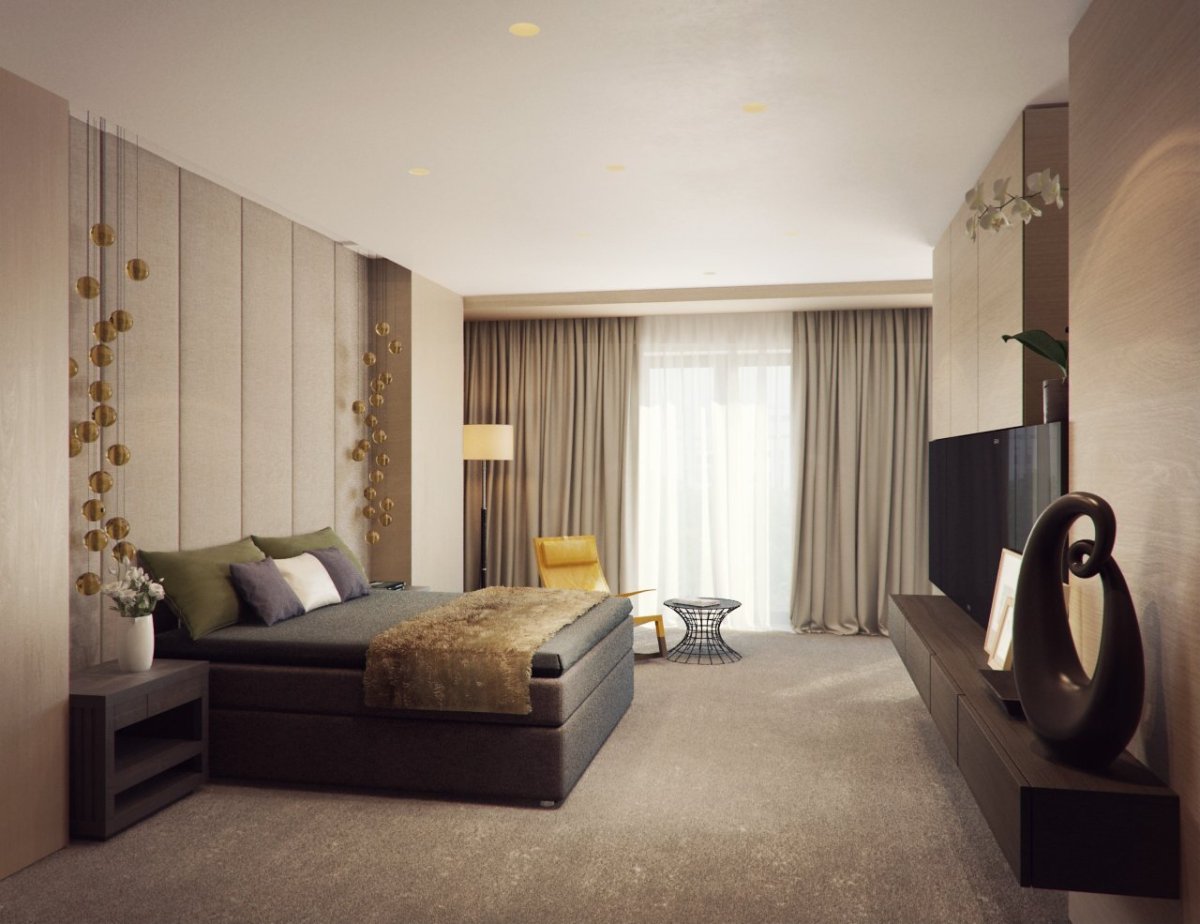 Современная спальня в бежевых тонах
