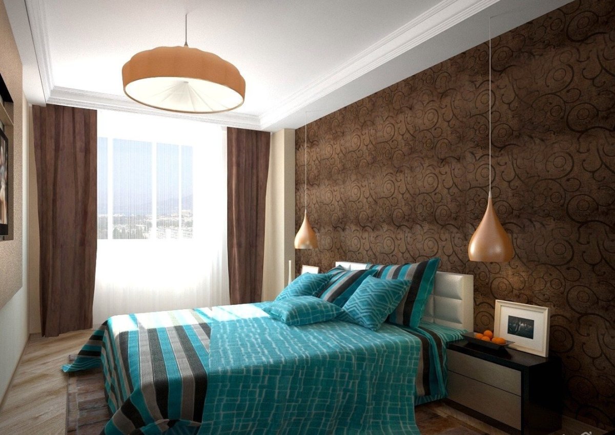 Спальня в бирюзово коричневых тонах