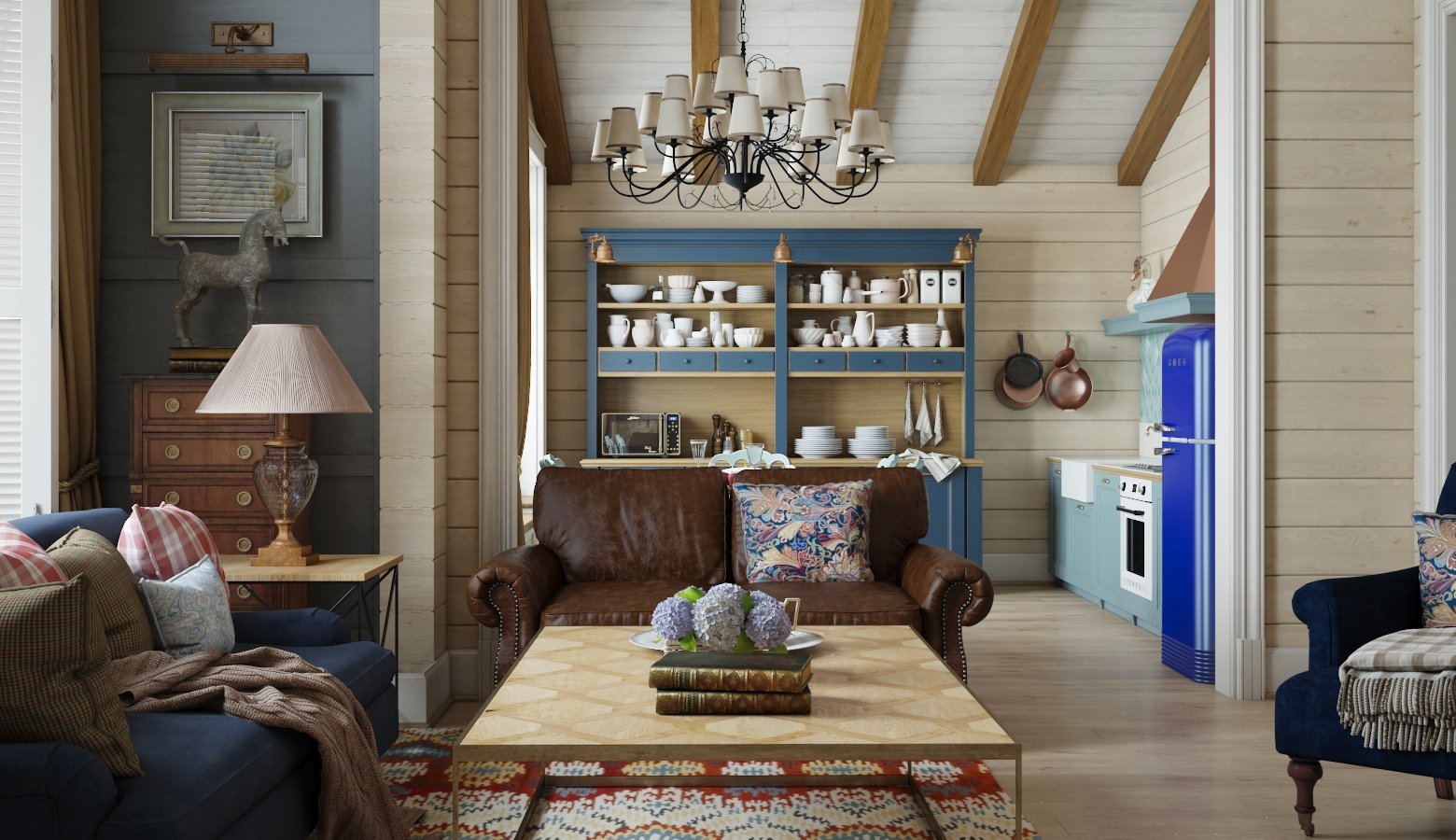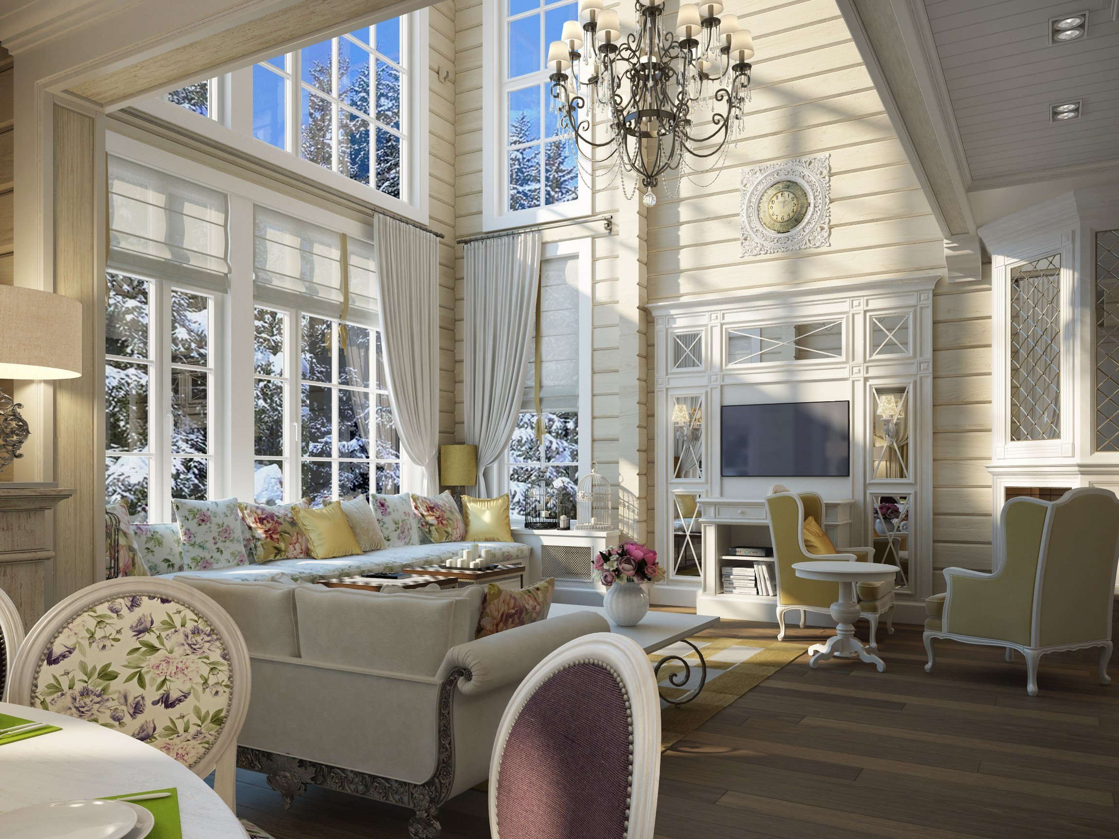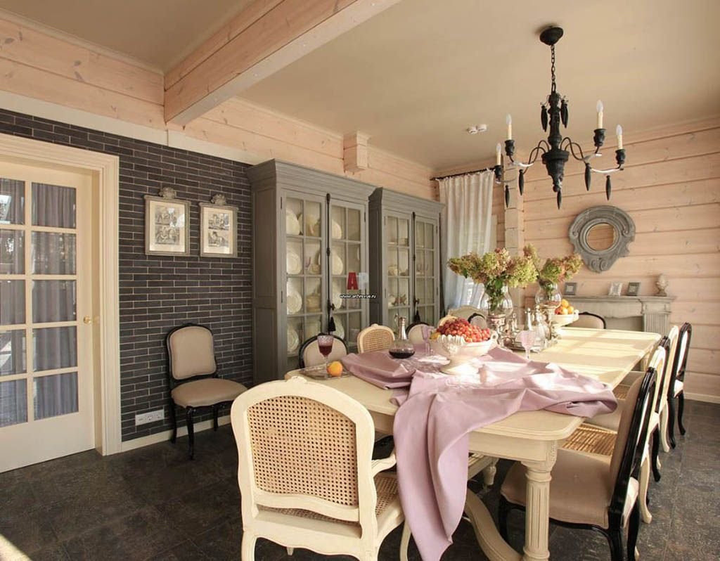 Интерьер кухни в стиле Прованс в доме из клееного бруса