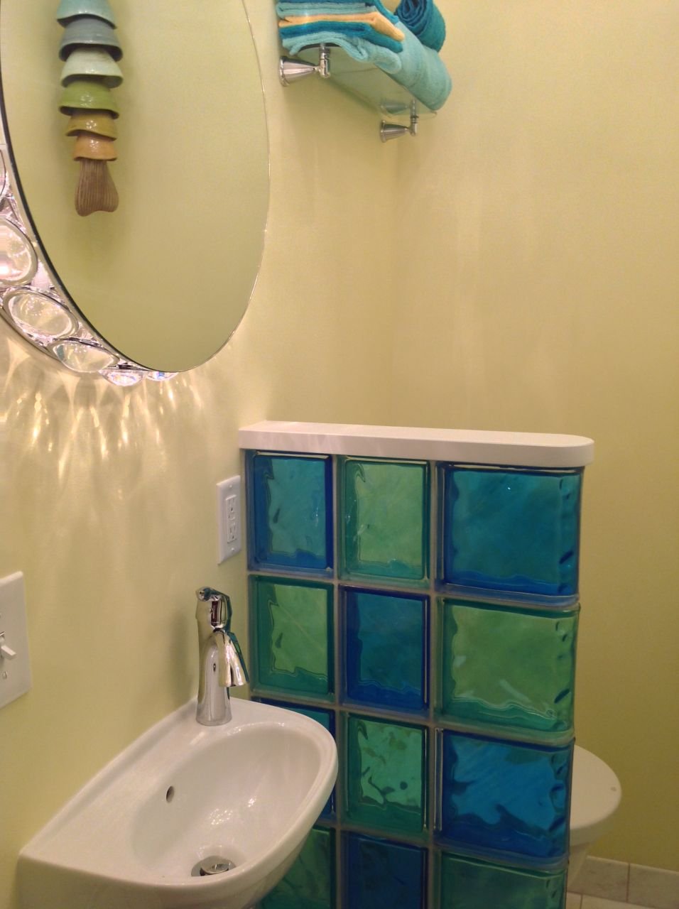 Цветные стеклоблоки в интерьере ванной