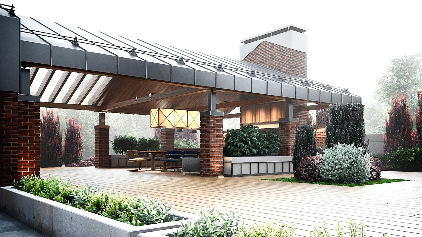 Пергола патио с мангалом