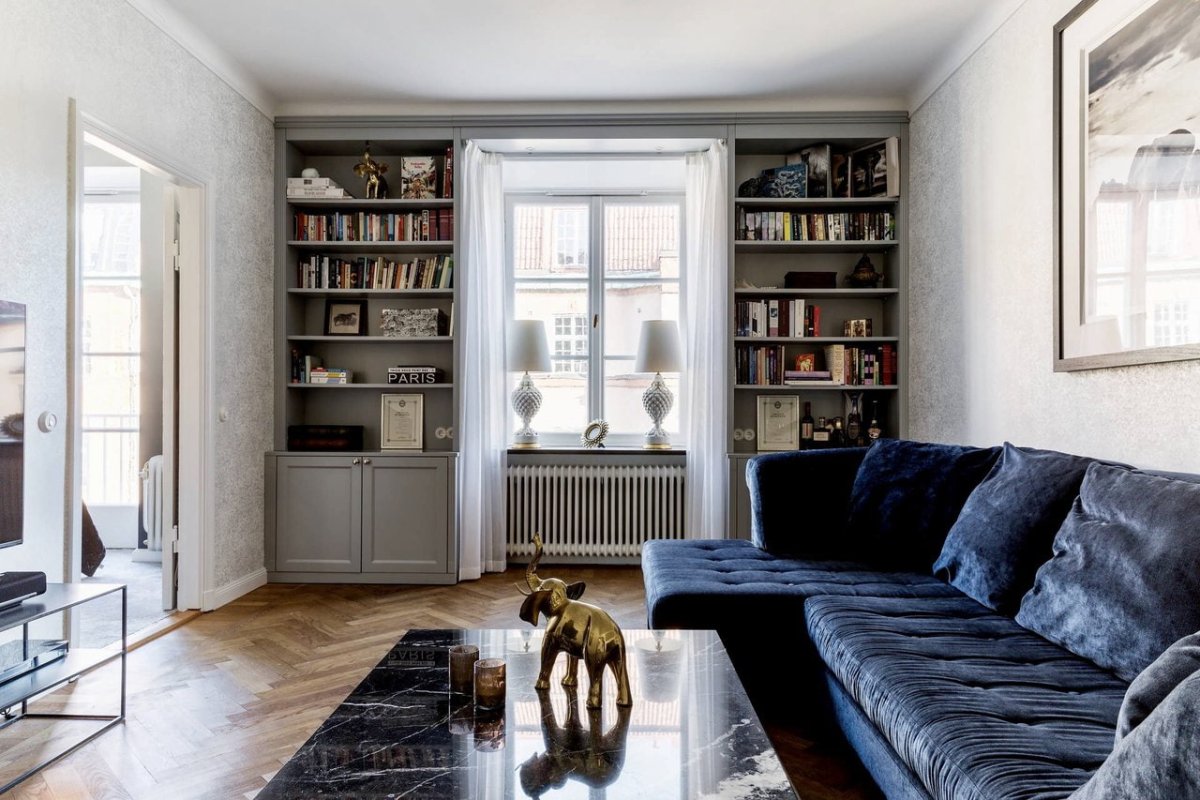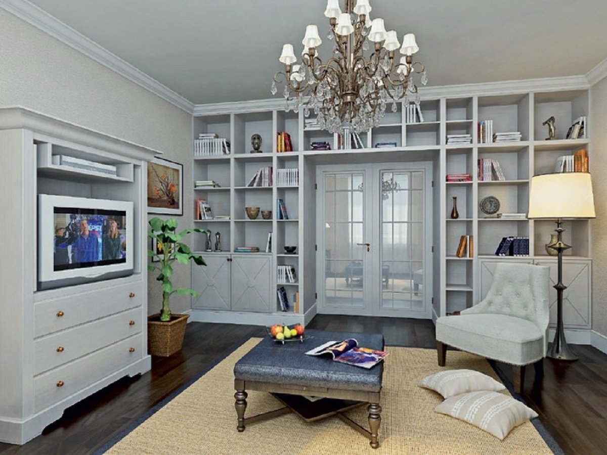Гостиная с книжными полками