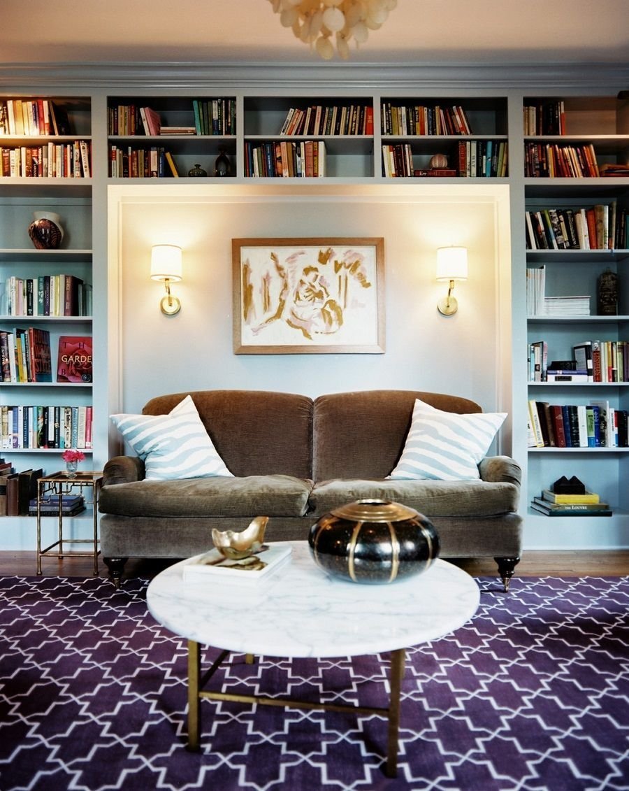 Книжные полки над диваном