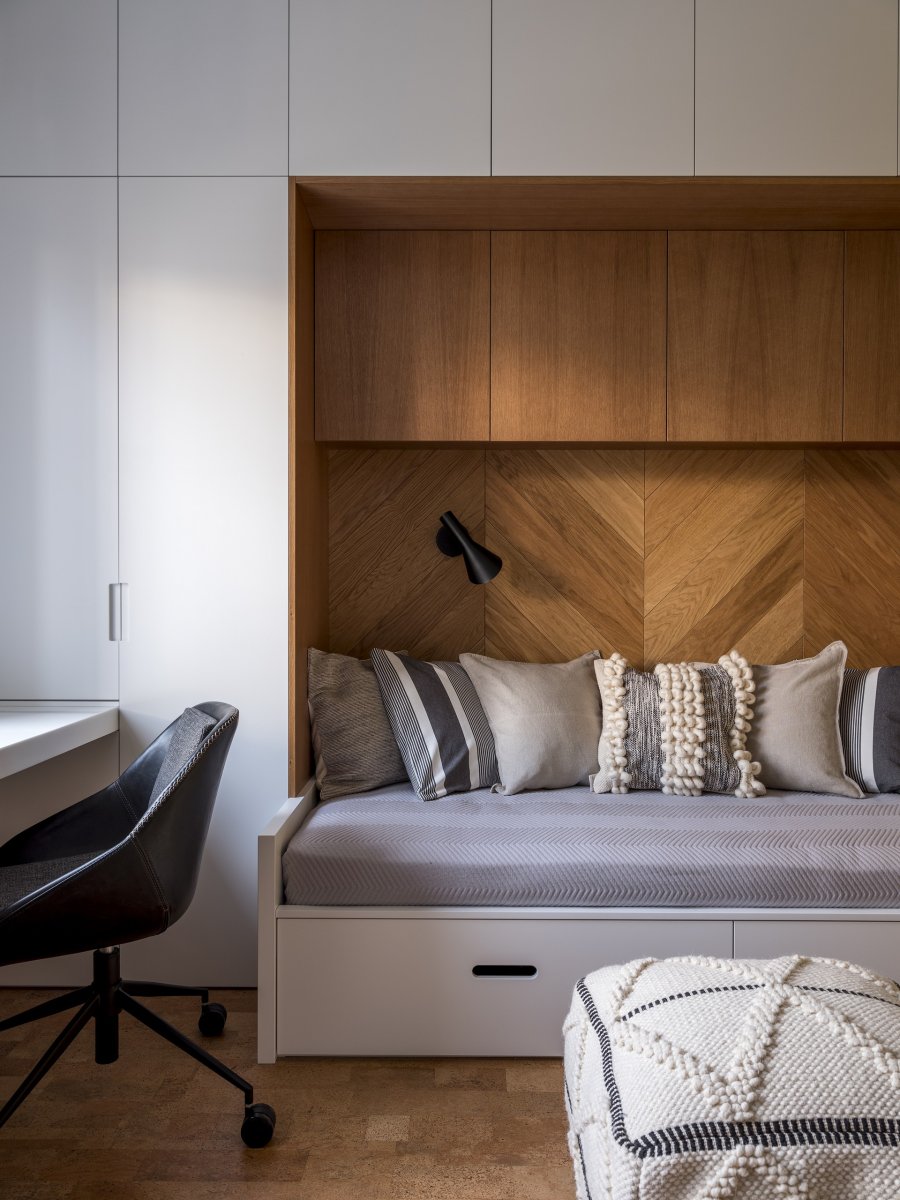 Диван между шкафами в интерьере