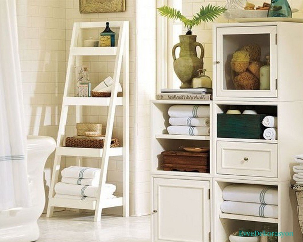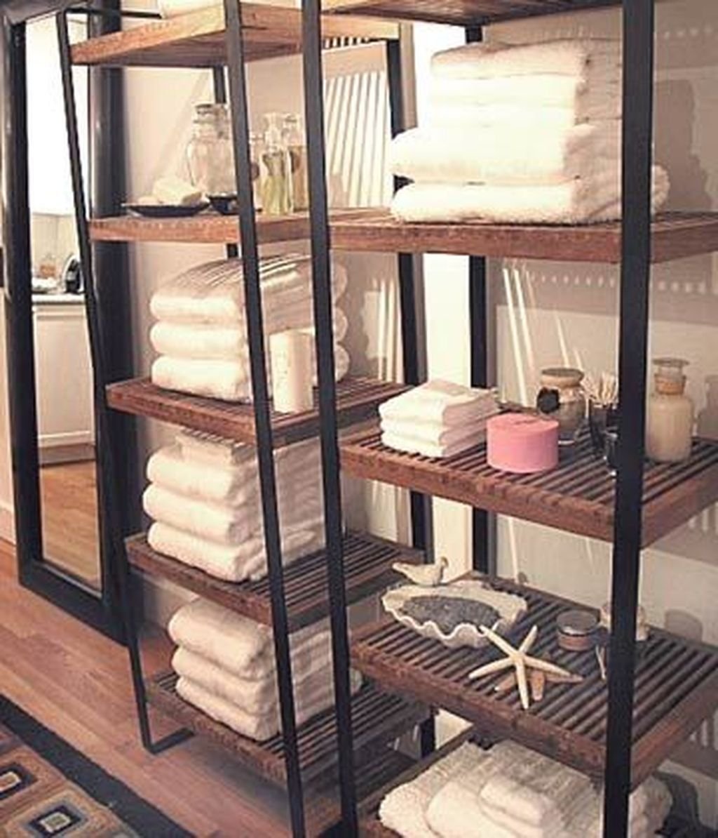 Стеллаж в ванной комнате в интерьере