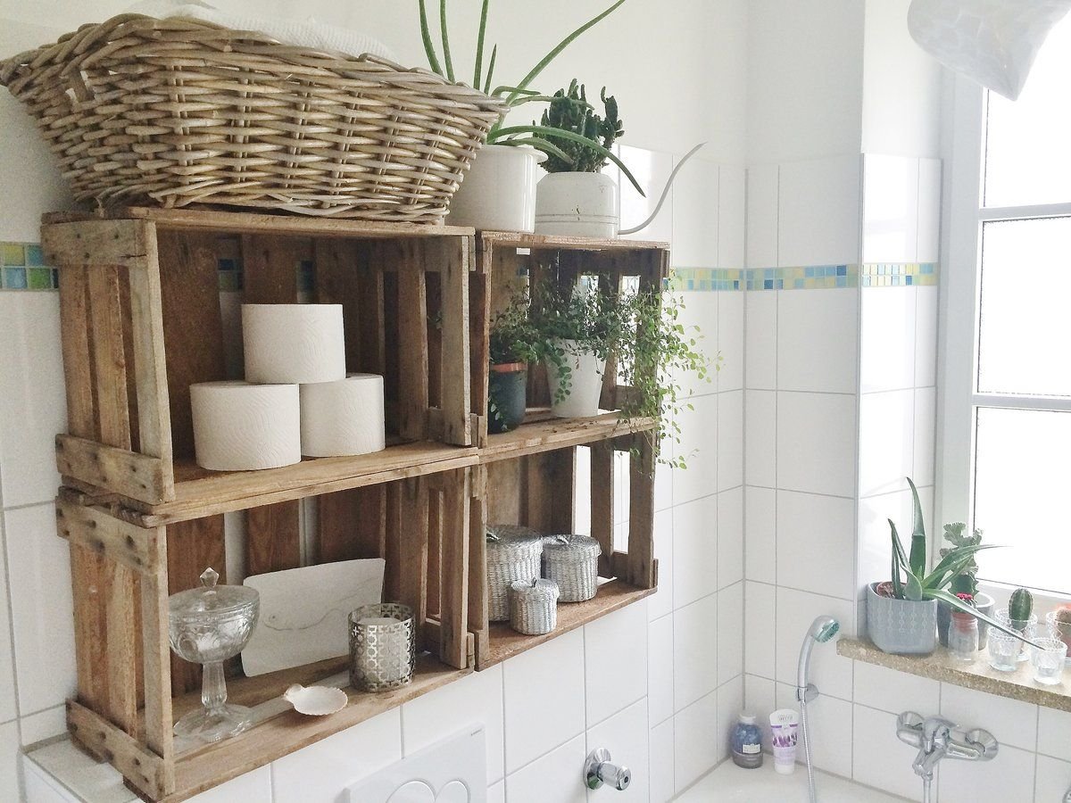 Деревянные полочки в ванную