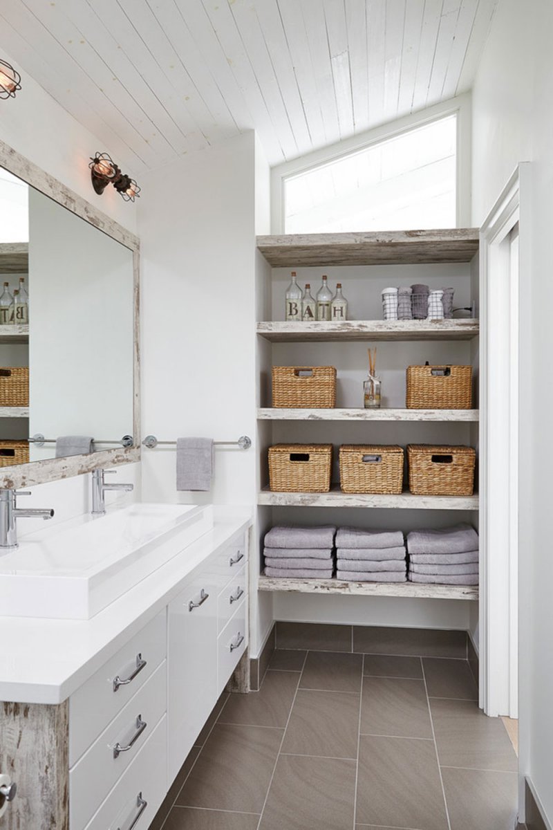 Открытые полки в ванной