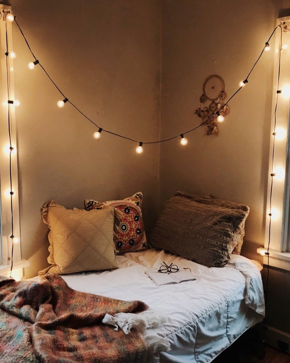Уютные комнаты для подростков с гирляндами