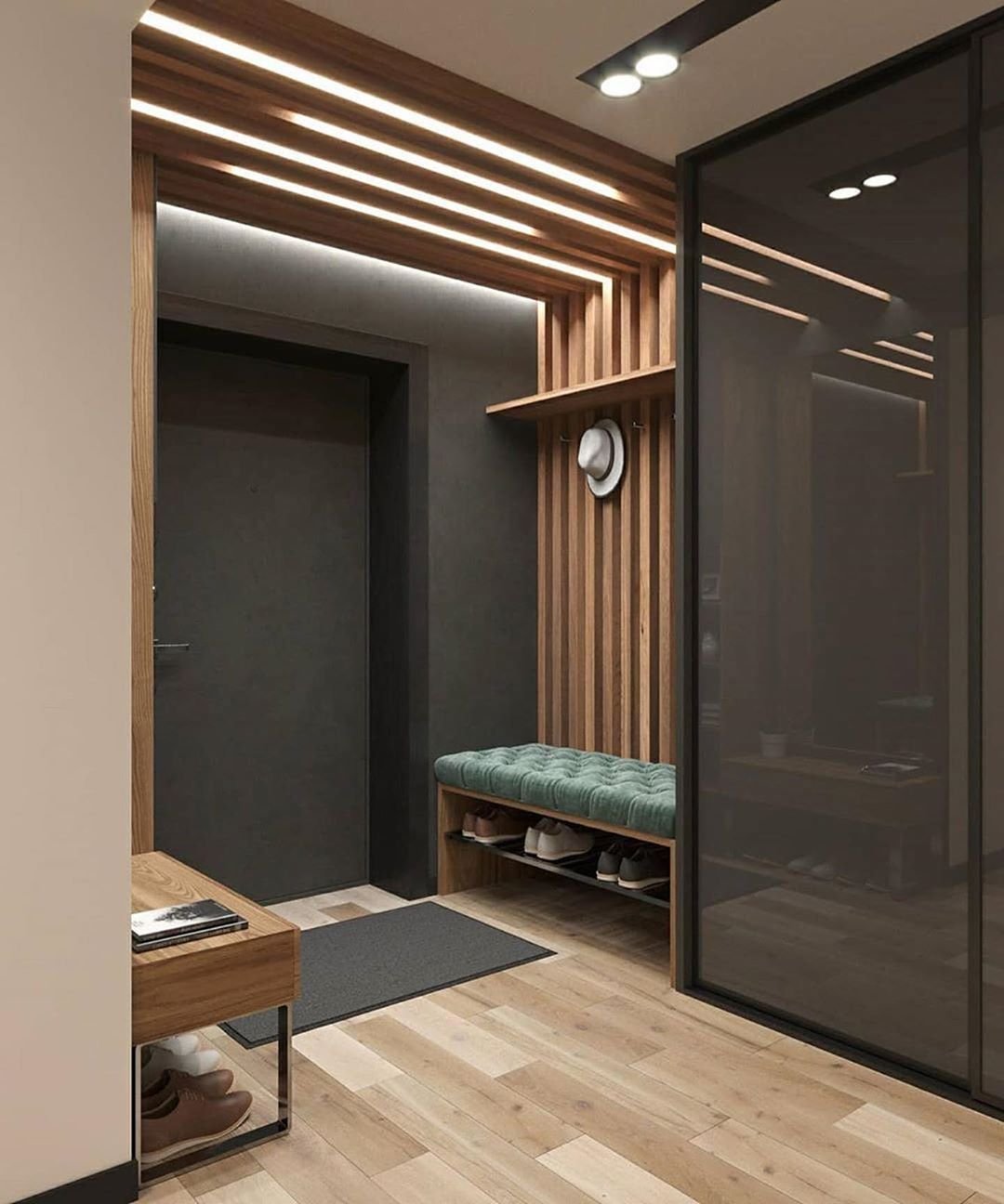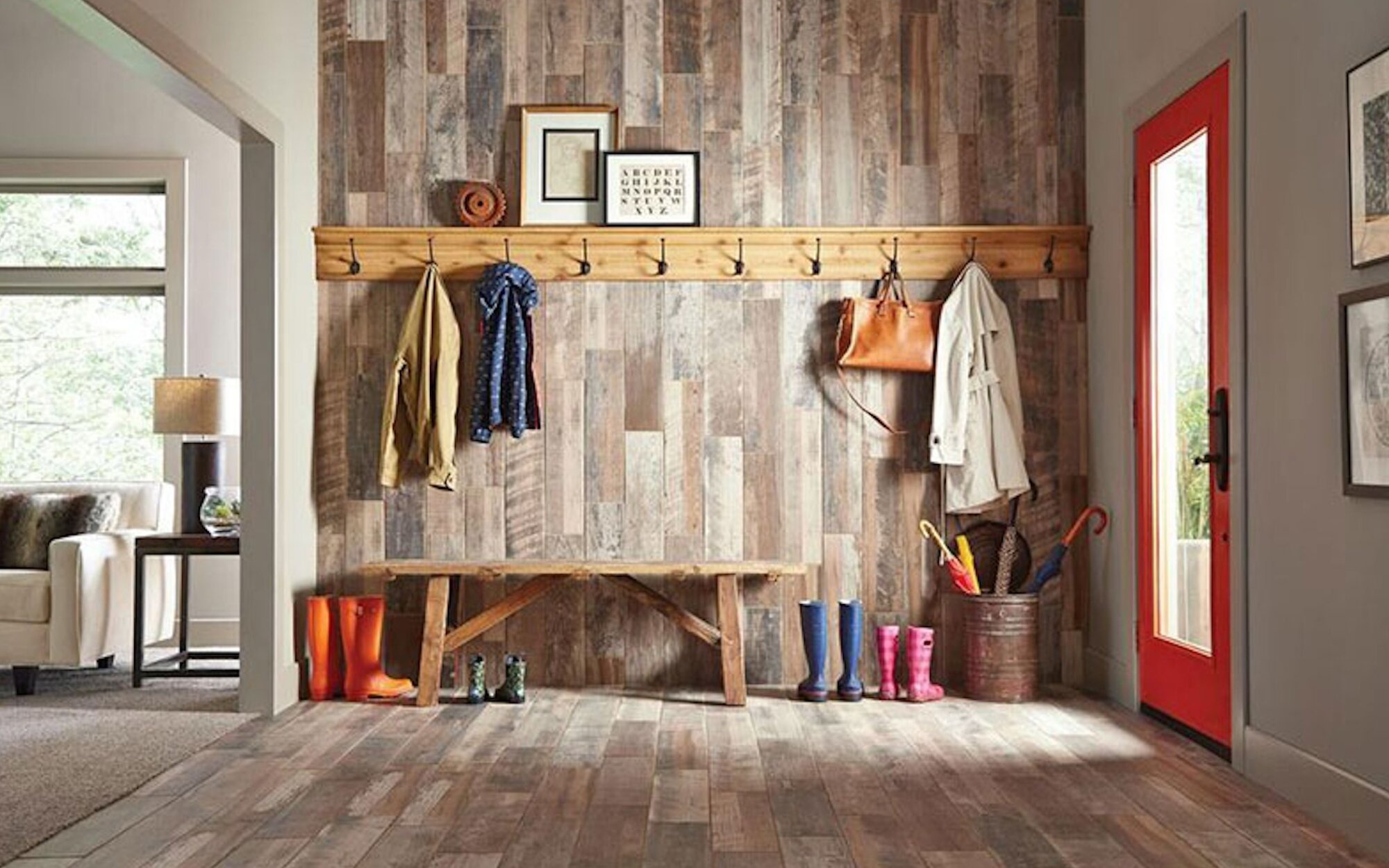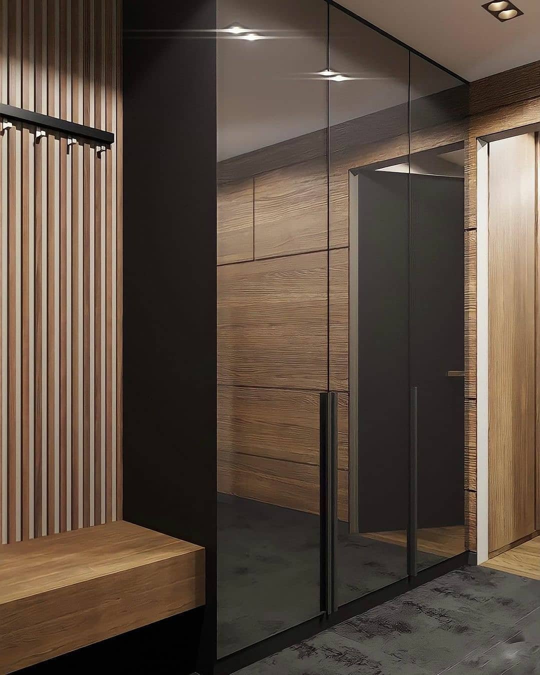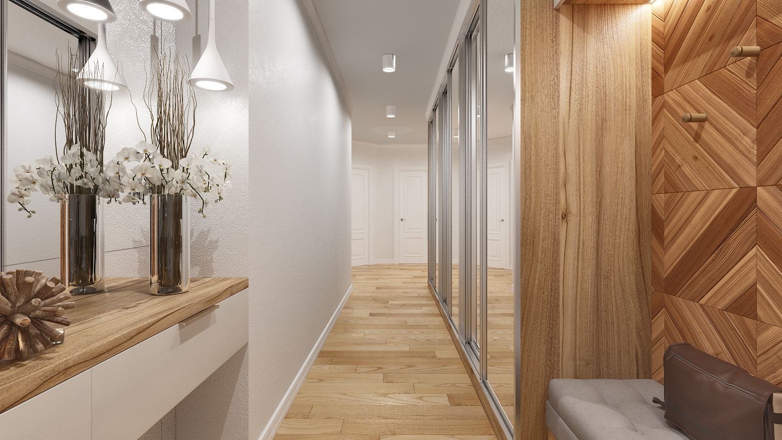 Ламинат в прихожей на стене комбинированный с зеркалом