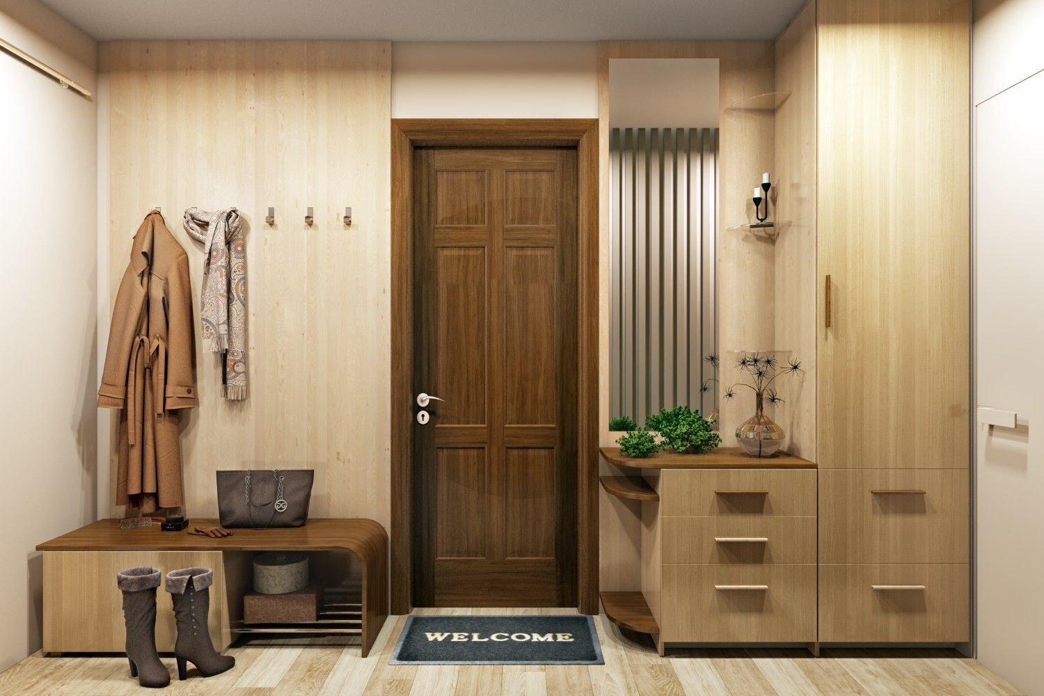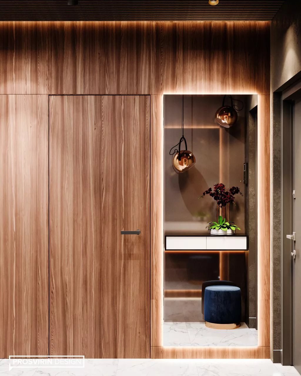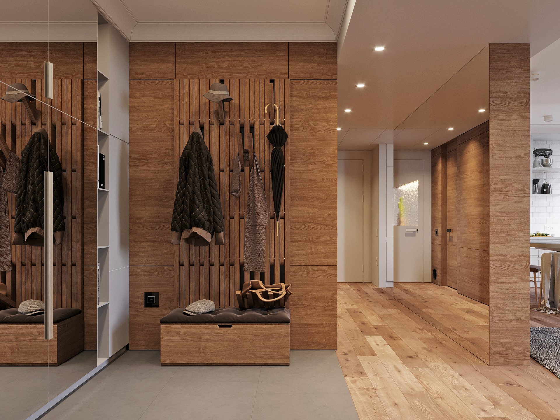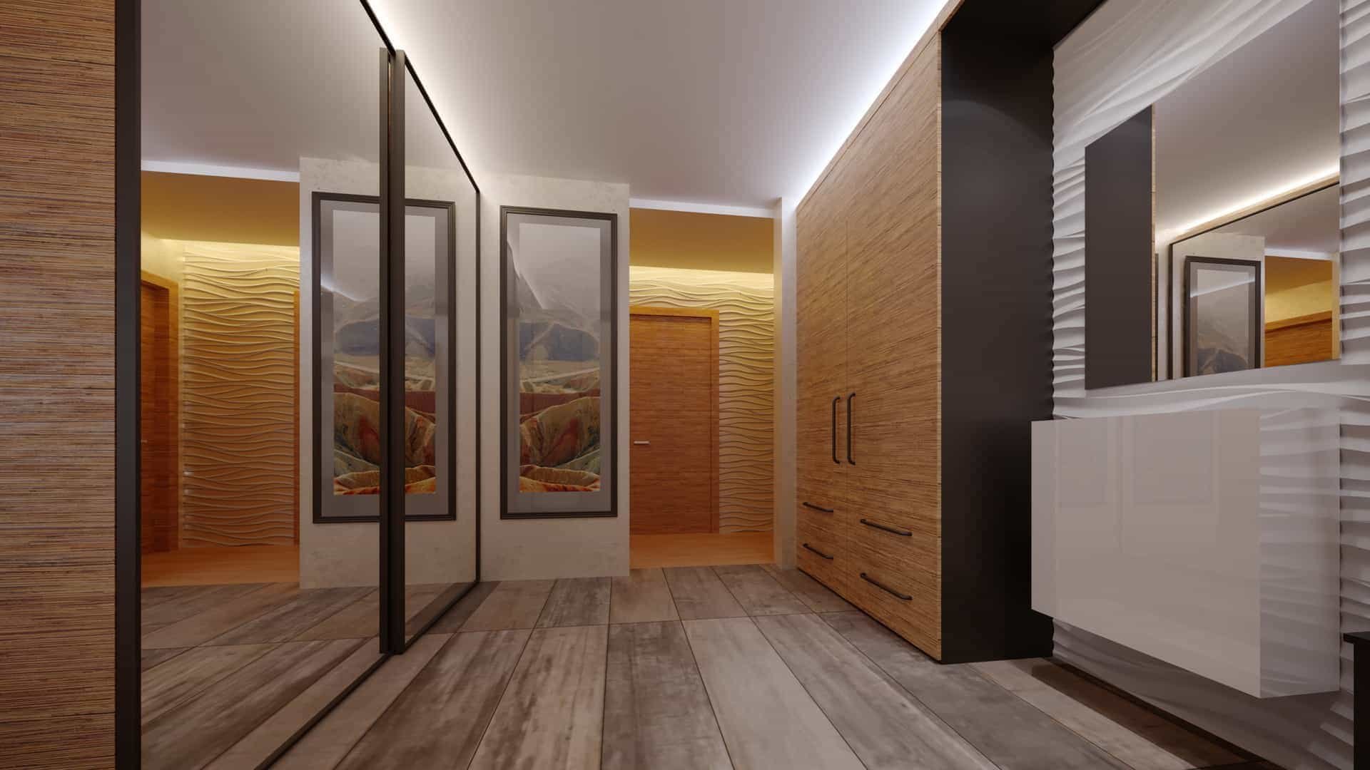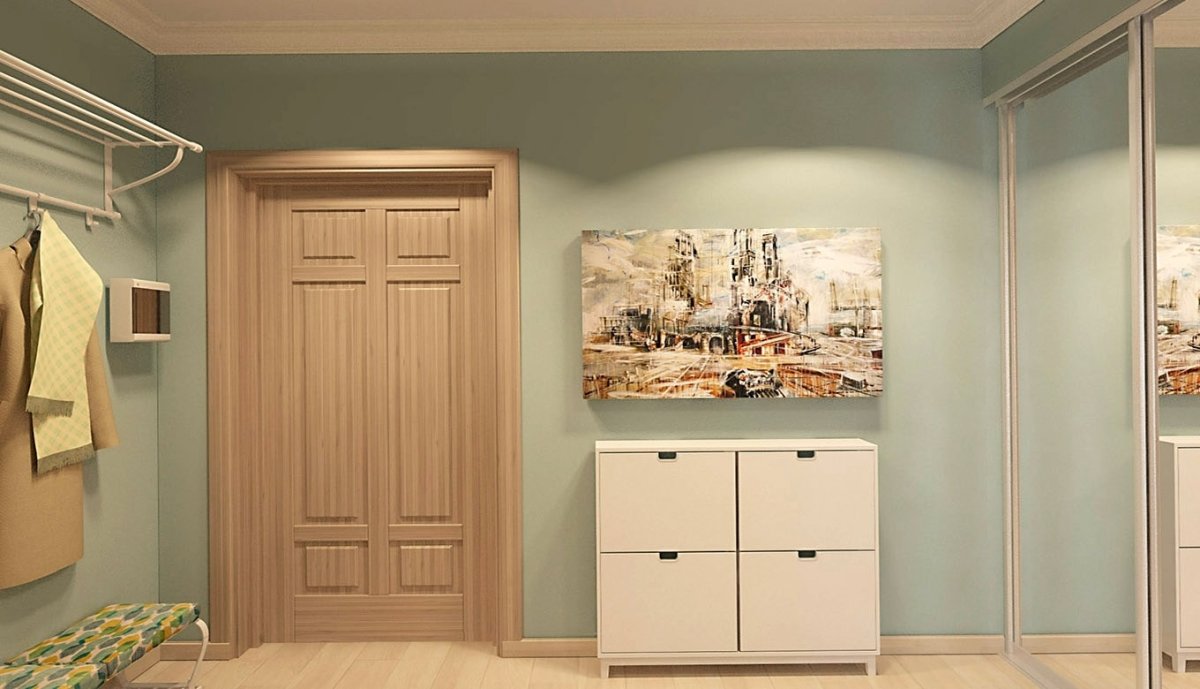 Ламинат в прихожей на стене комбинированный с зеркалом