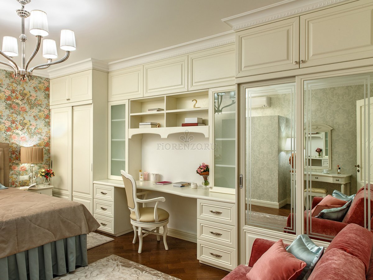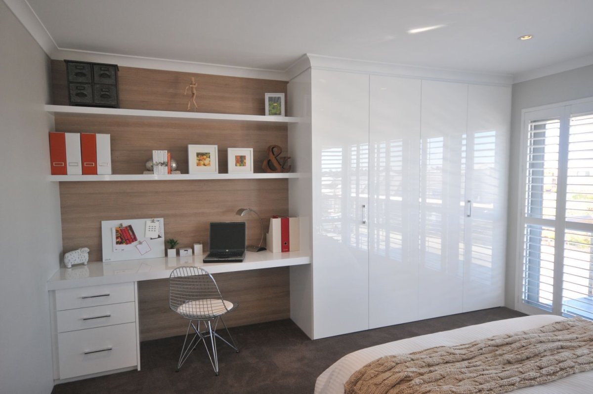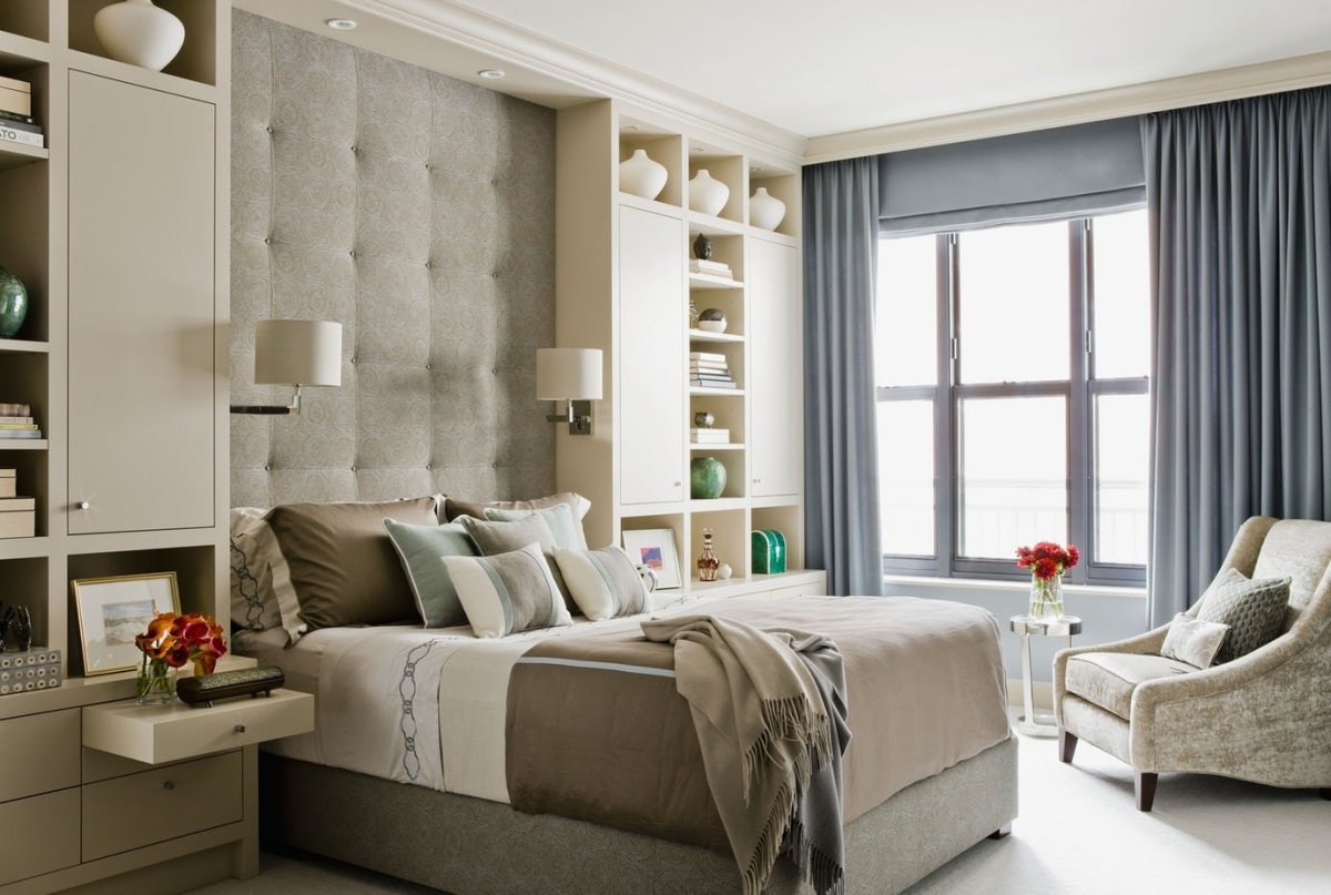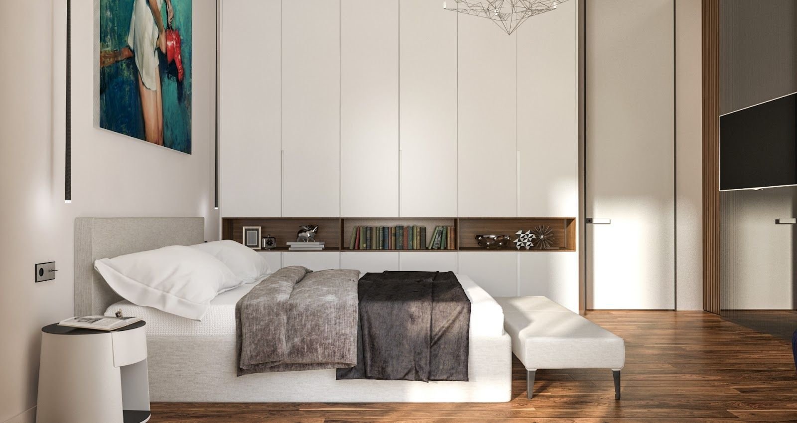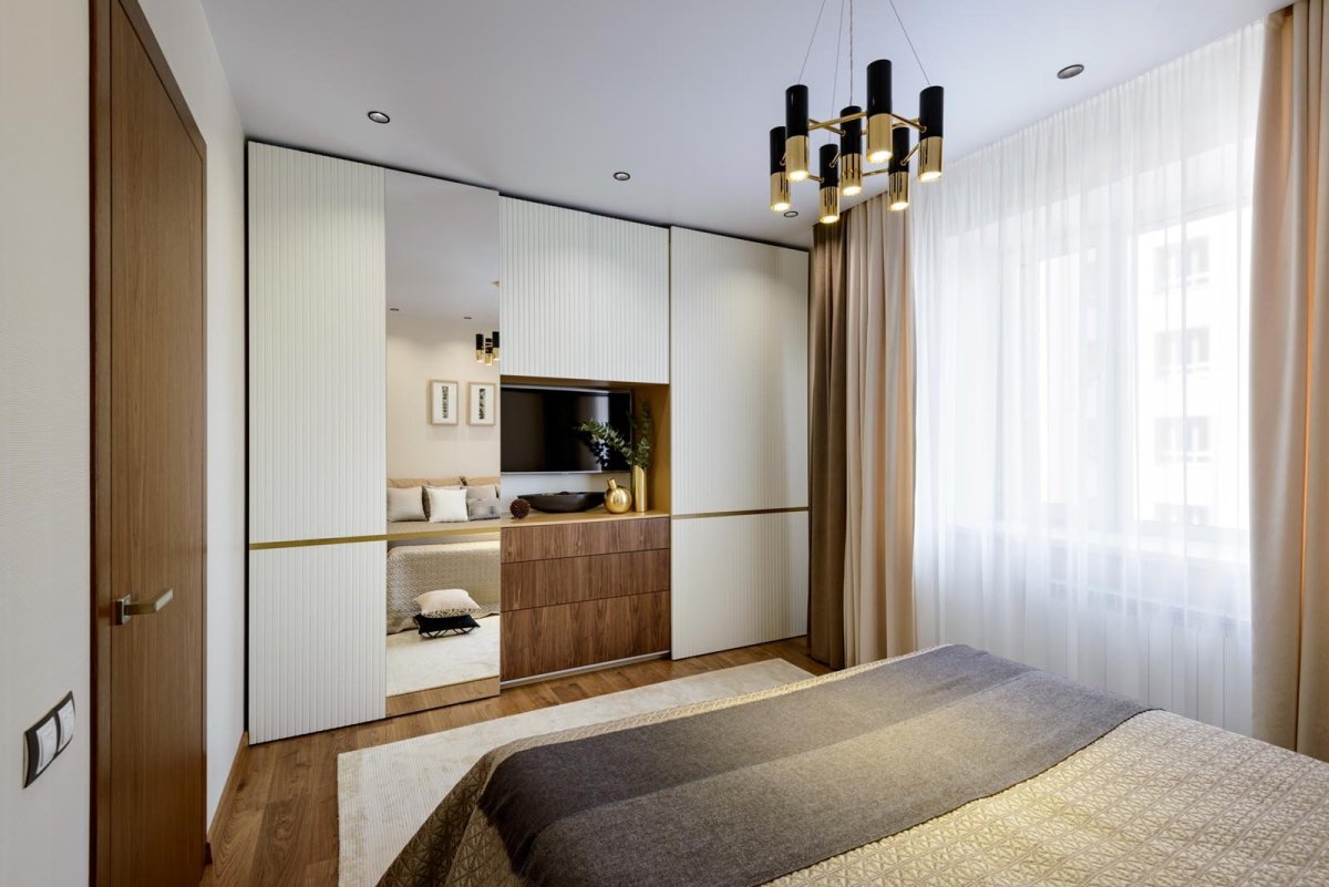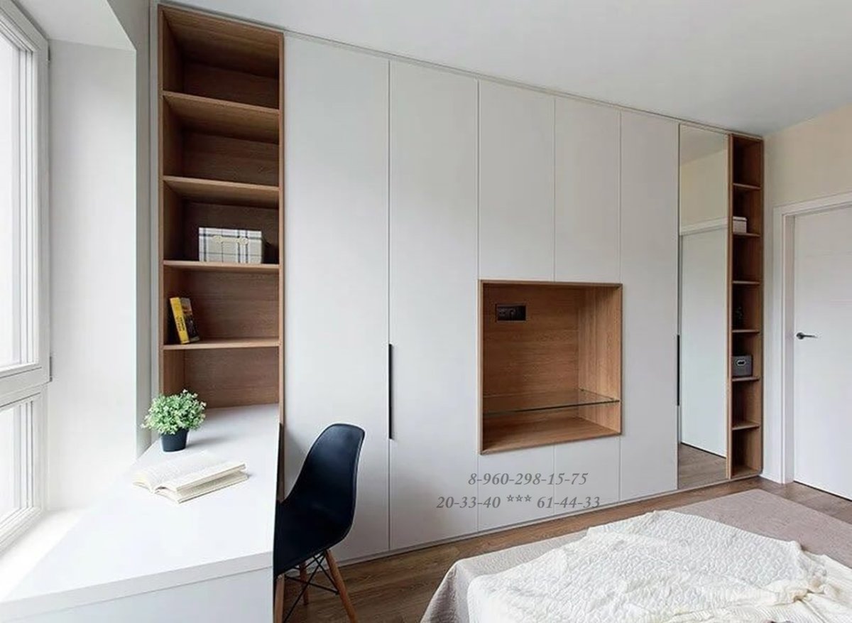 Угловые трапециевидные шкафы с кроватью в спальню дизайн