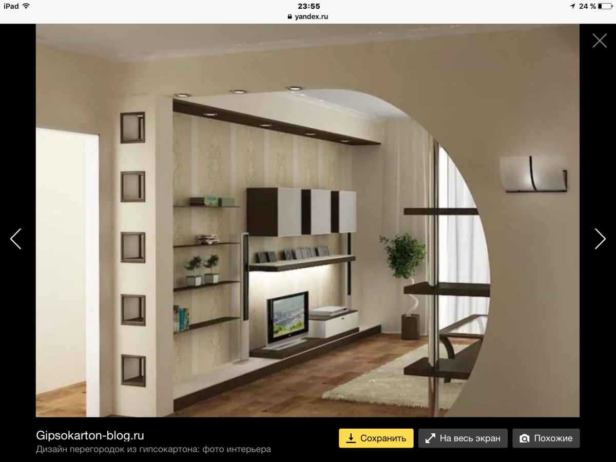 Перегородка из гипсокартона для зонирования комнаты