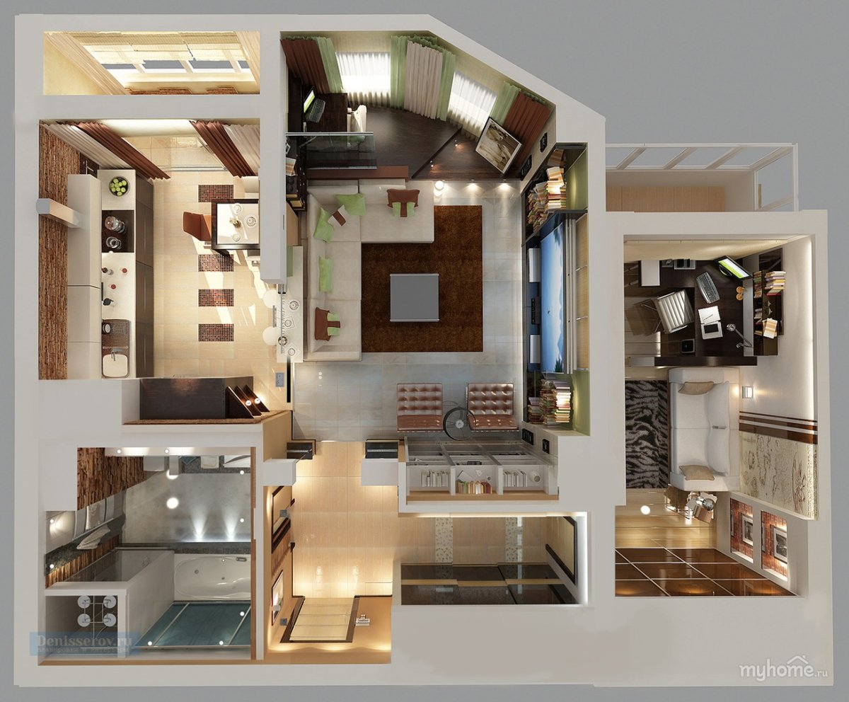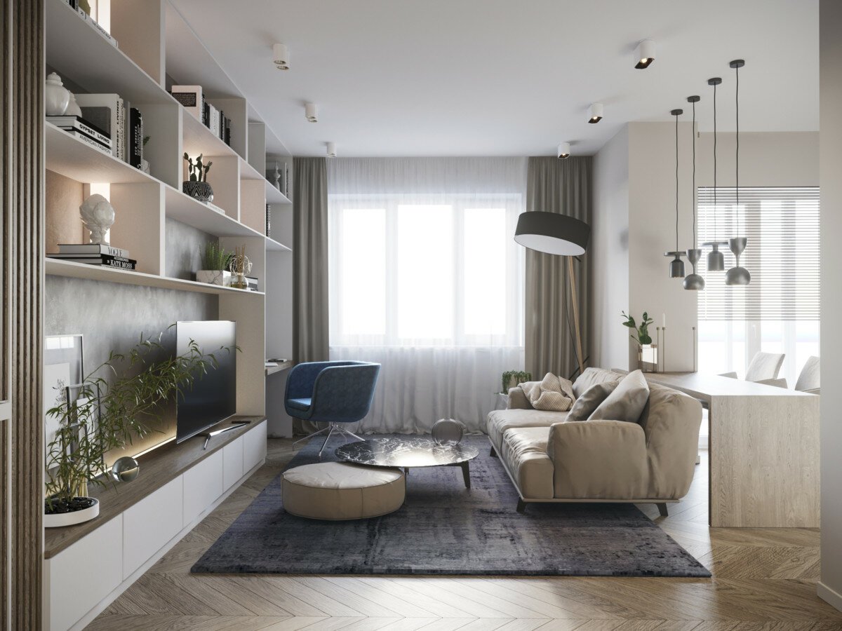 Интерьер для двухкомнатной квартиры 43 кв.м