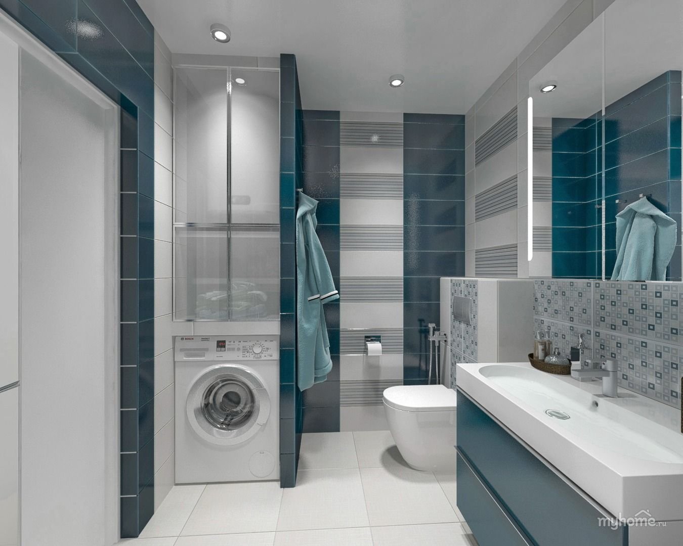 Современная ванная со стиральной машиной