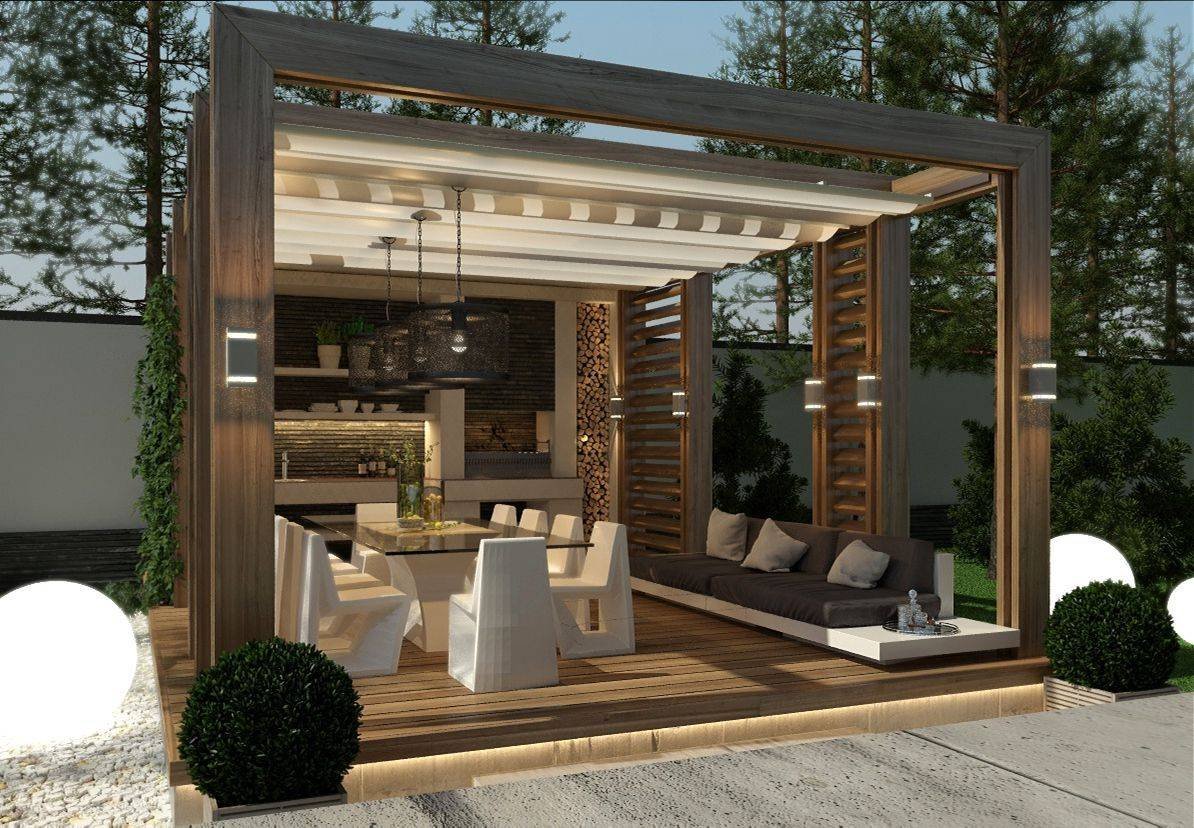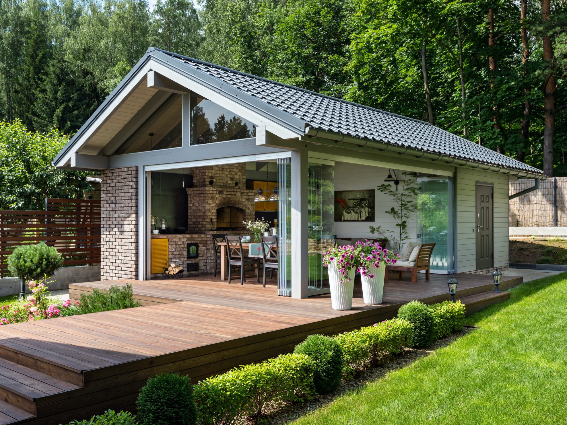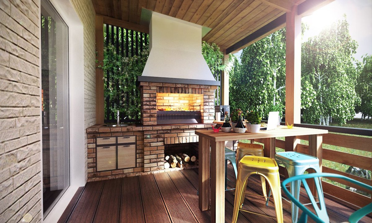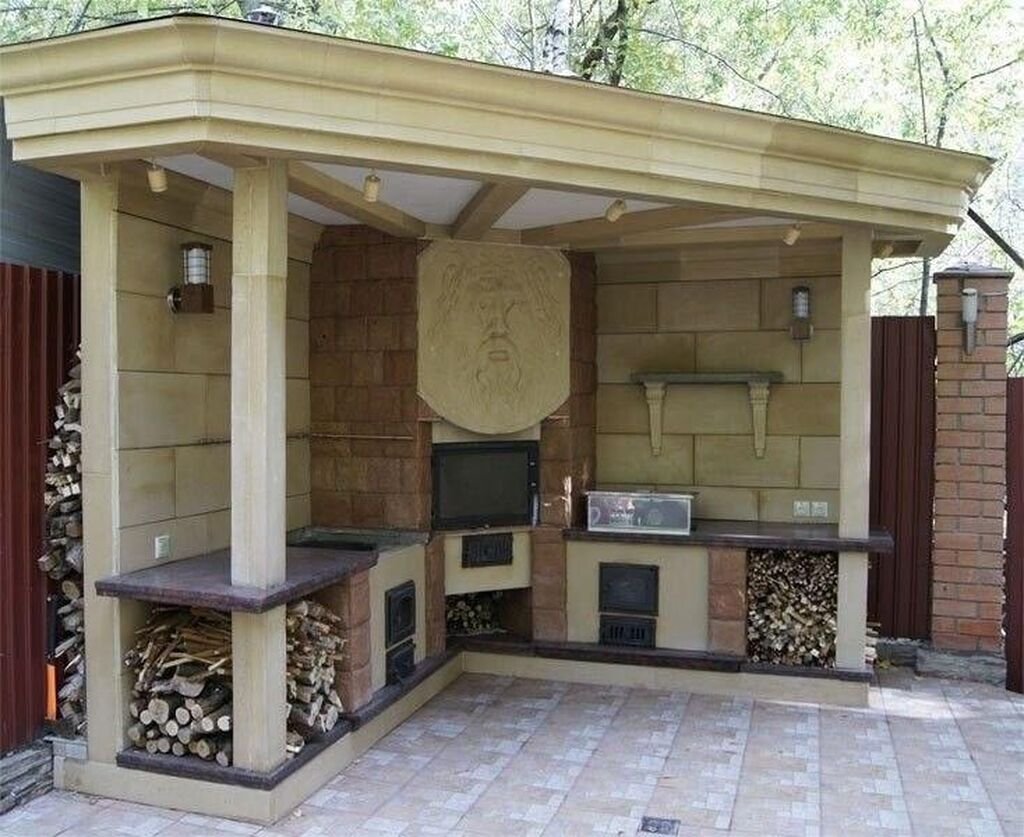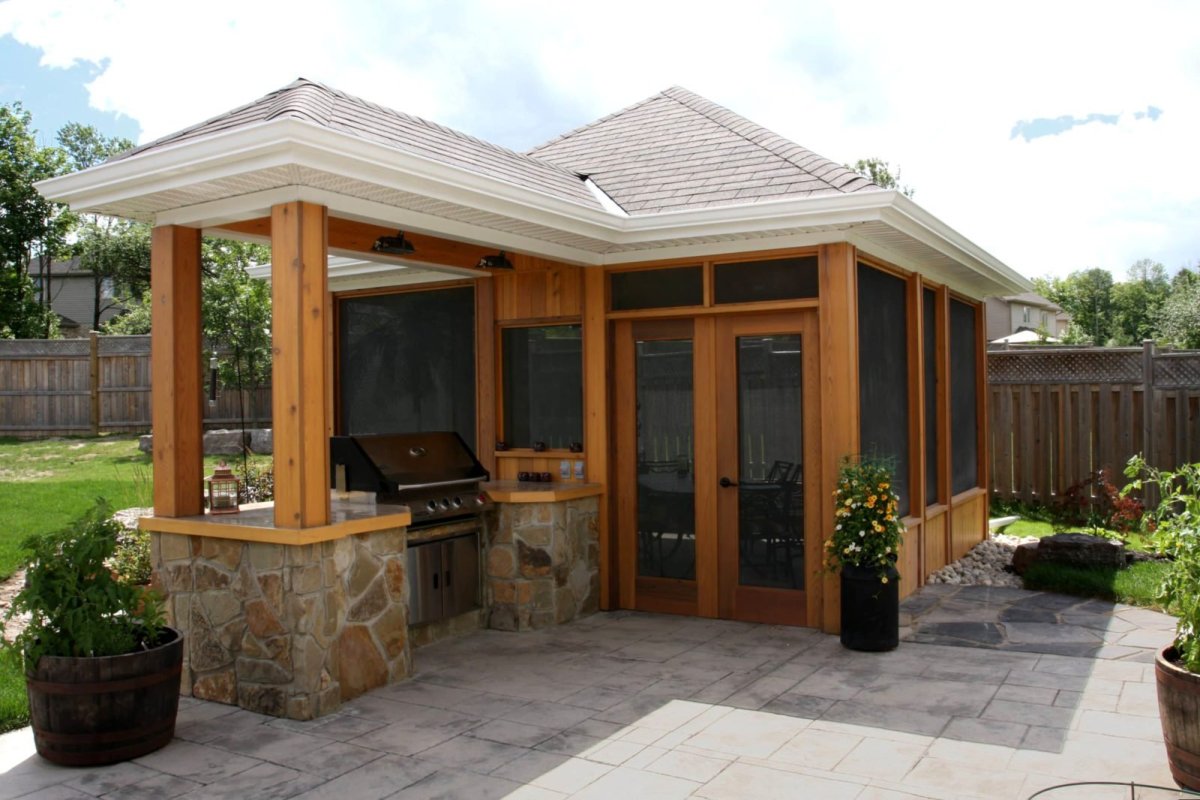 Крытая беседка застекленная с мангалом и барбекю 4х6