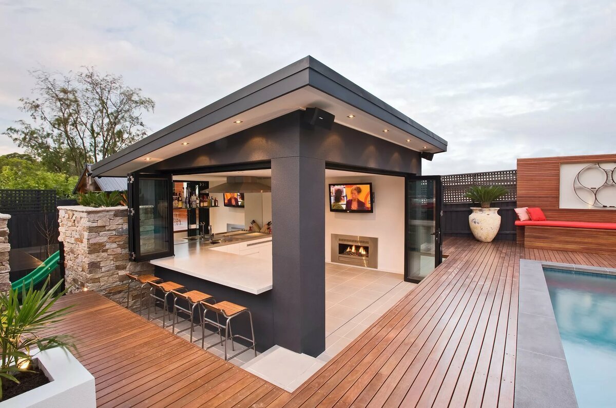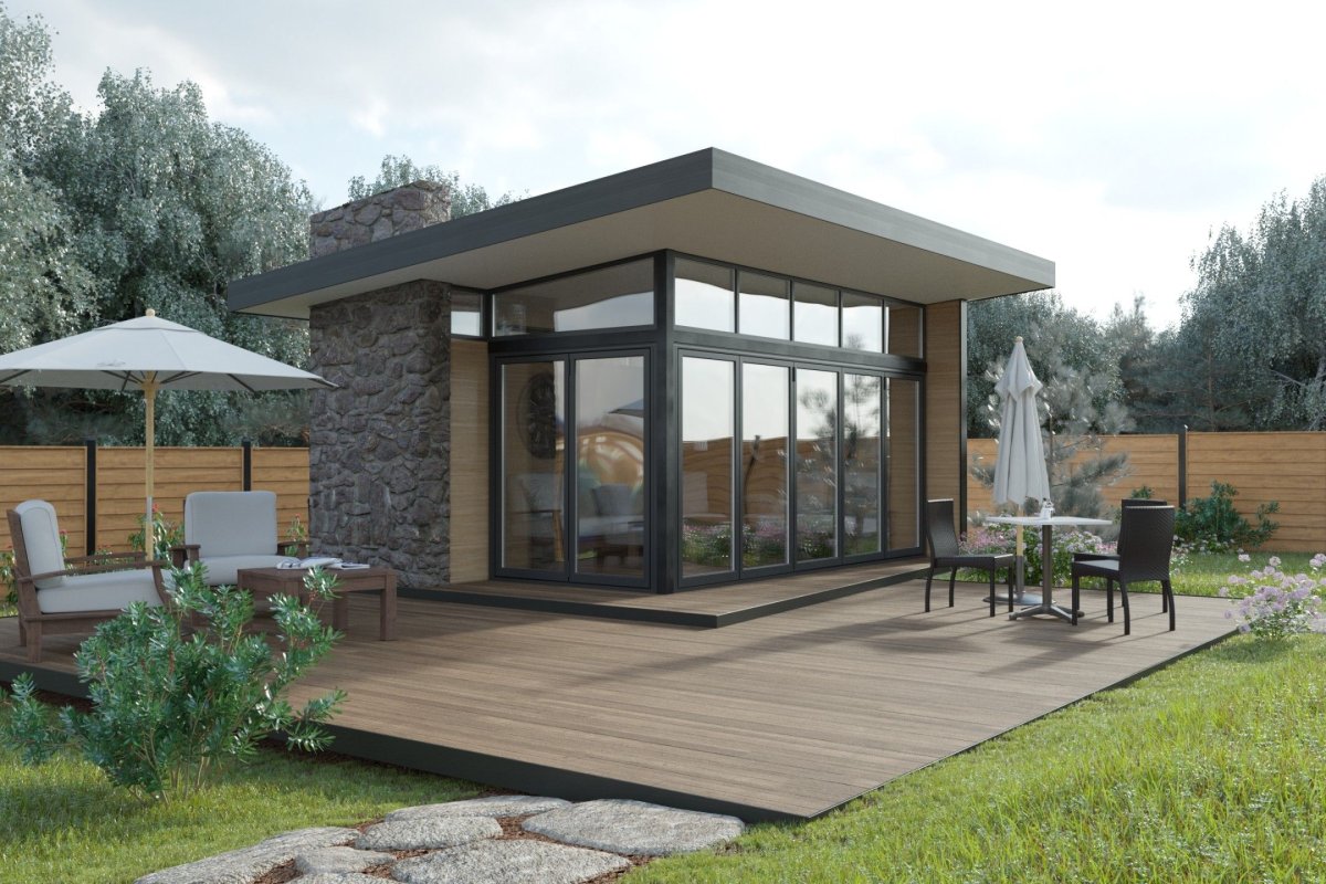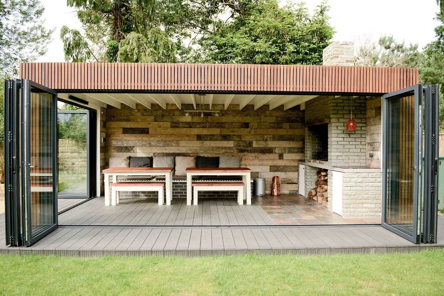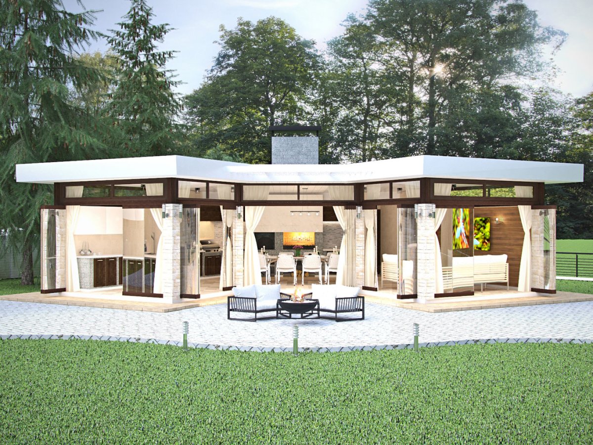 Крытая беседка застекленная с мангалом и барбекю 4х6