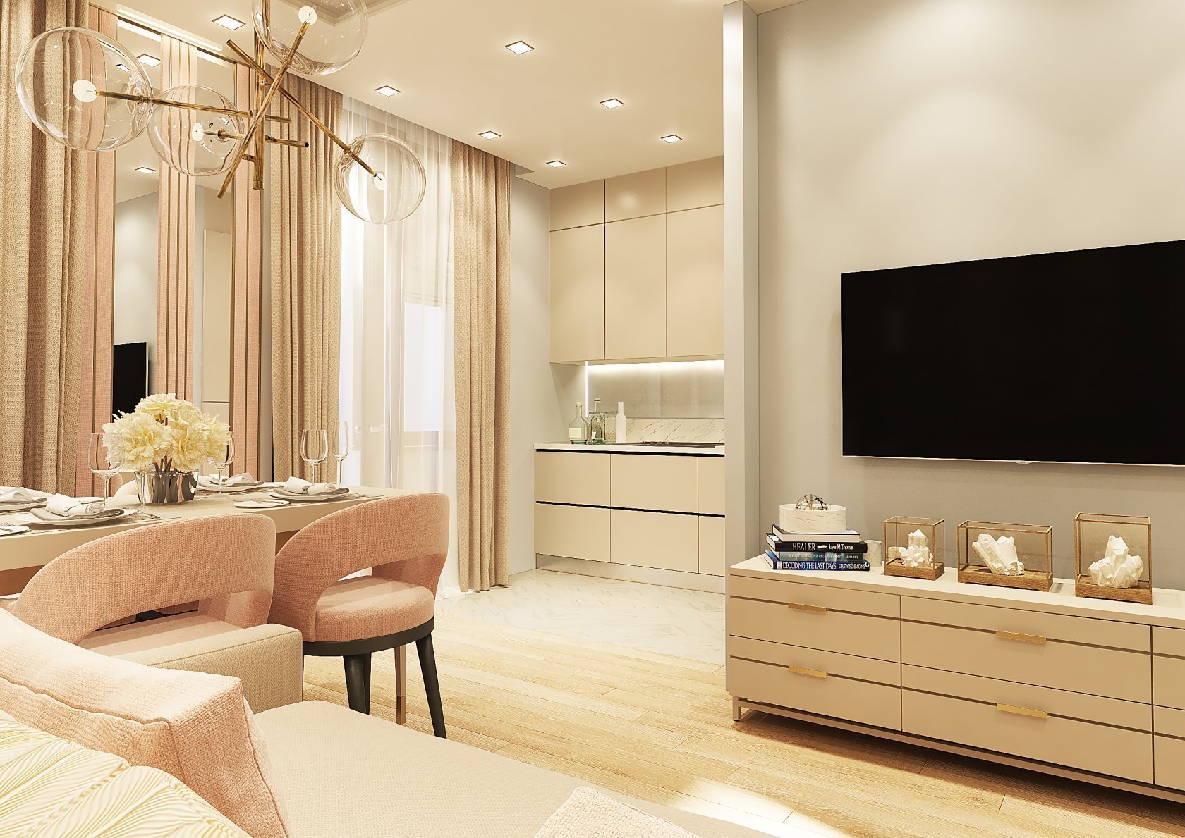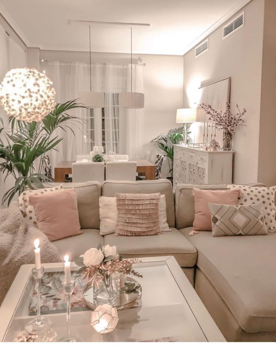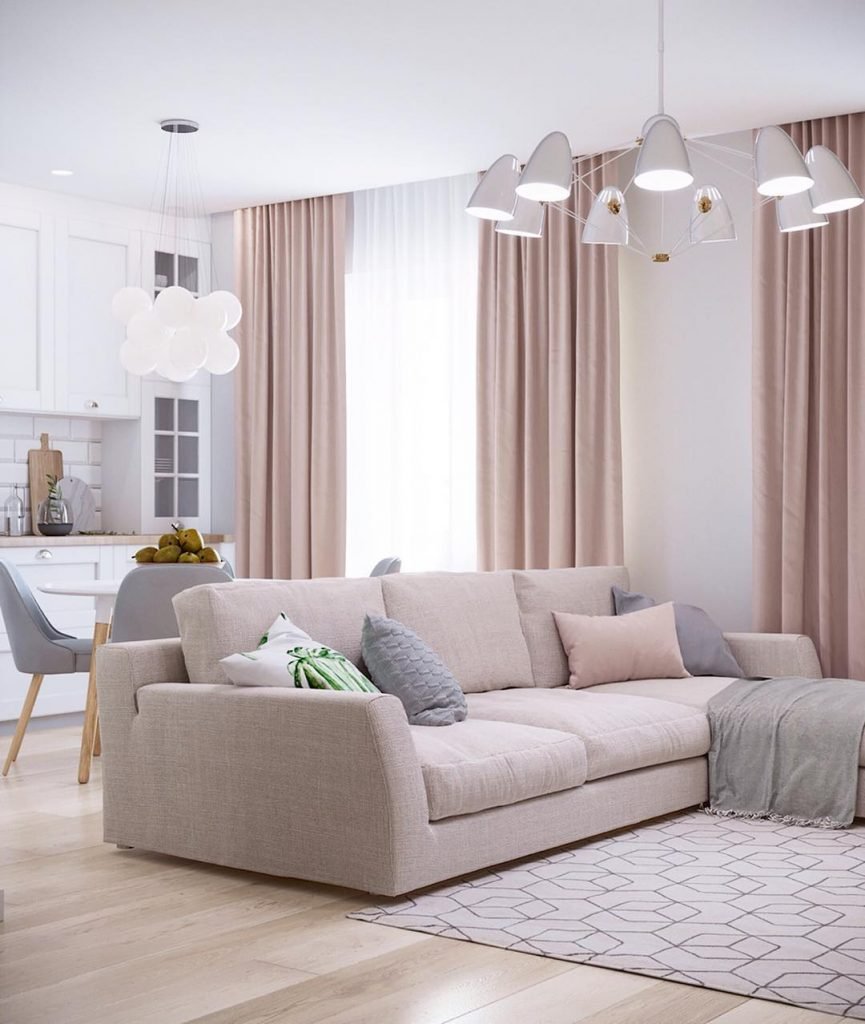 Интерьер гостиной в пудровых тонах