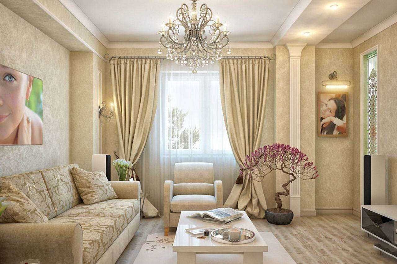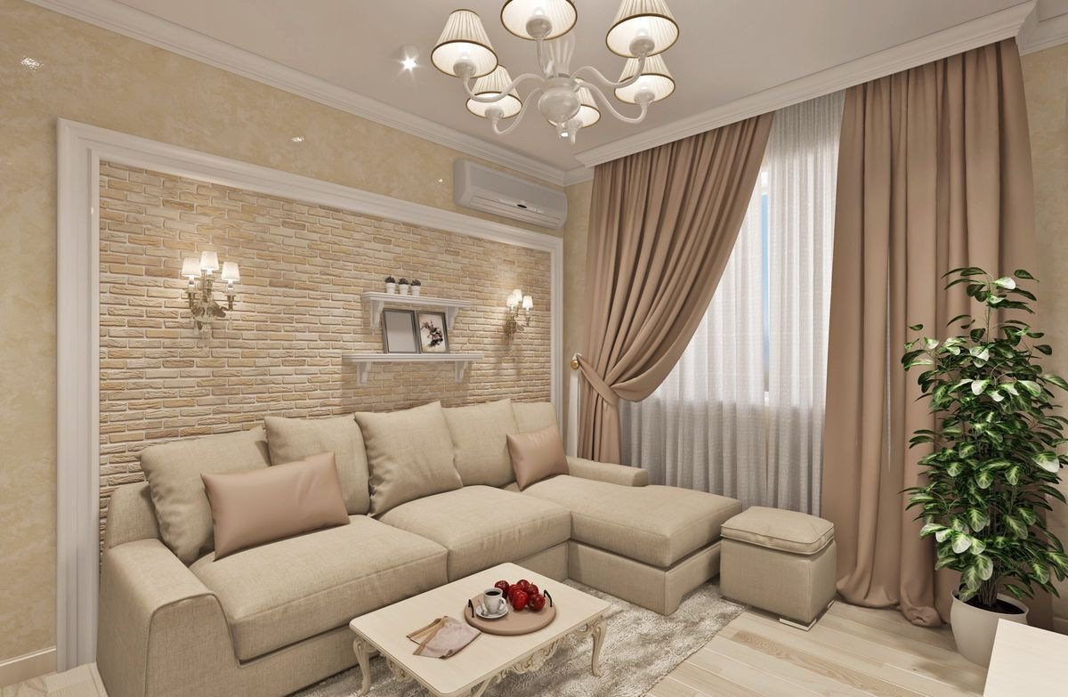 Дизайн зала в бежевых тонах