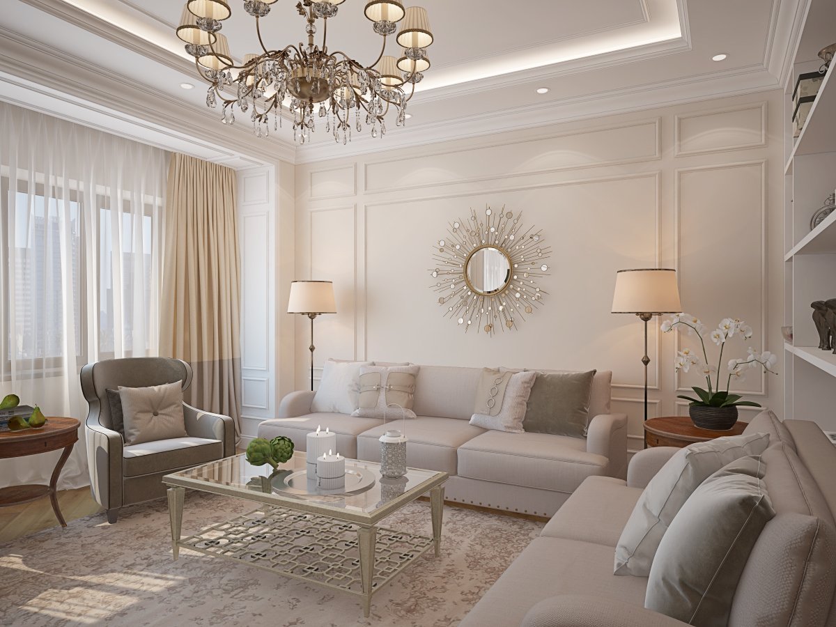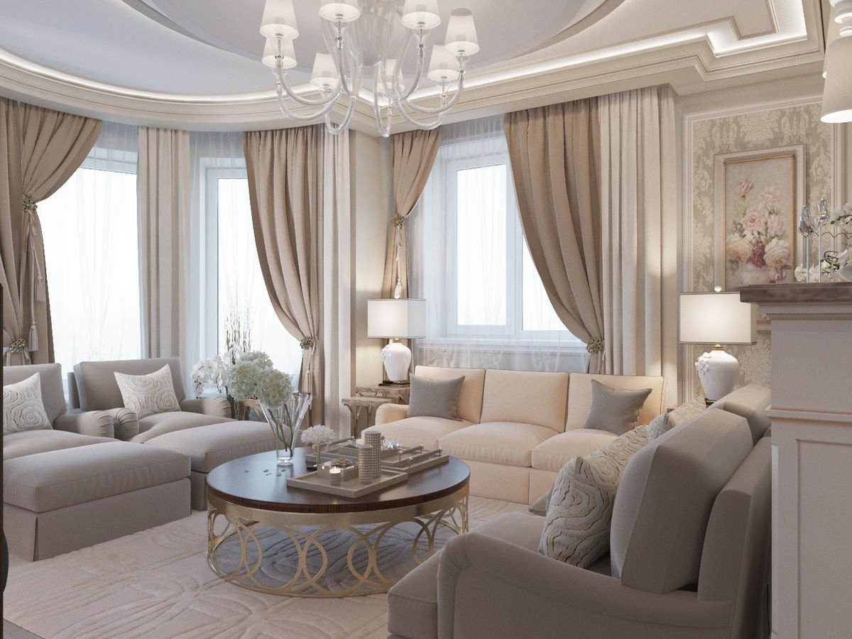 Гостиная в бежевых тонах классика